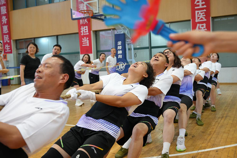 赛场上,医保健儿们褪去工作中的严谨模样,以昂扬姿态全力冲刺:篮球赛场,队员们攻防转换间尽显默契,每一次投篮都牵动人心;拔河现场,大家紧握绳索、齐喊号子,用劲往一处使的韧劲诠释“团结就是力量”;团体跳绳、接力跑赛道上,队员们步伐协同、配合无间,用速度与协作书写风采。赛场下,啦啦队的加油声、助威声此起彼伏,递水、擦汗、鼓劲的暖心场景随处可见,既赛出了水平,更赛出了医保人的友好与担当,充分展现出全市医保系统干部职工超越自我、凝心聚力的精神风貌。
