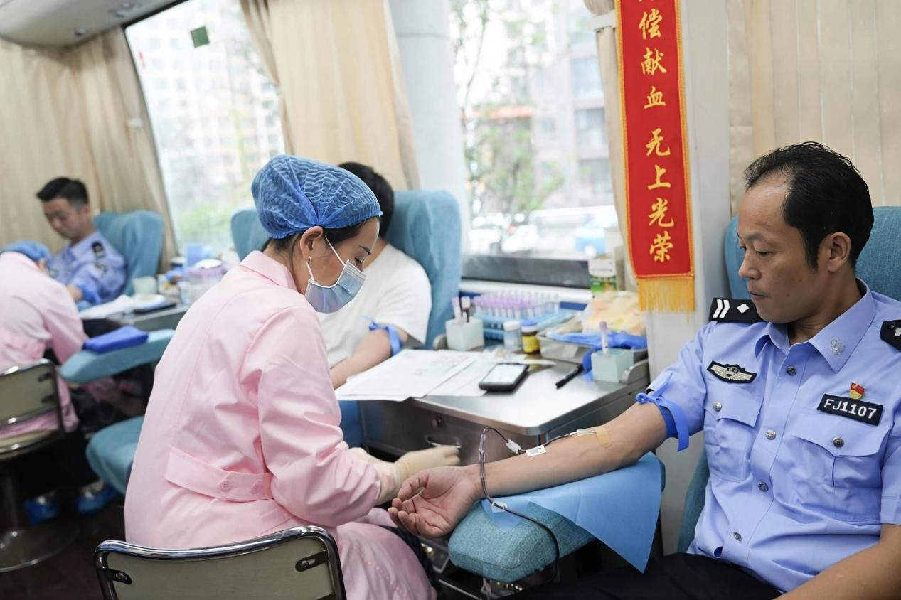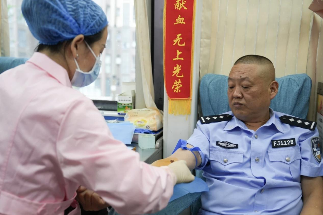 献血队伍中,藏青身影格外耀眼,既有扎根警营多年、早已把无偿献血当作“必修课”的老同志,他们熟练地填写表格、配合检查,用多次献血的经历为年轻同事作表率;也有刚褪去青涩、加入警营不久的新民警,他们眼神坚定、主动靠前,以“第一次献血”的特殊方式,践行从警时的初心承诺。当针头刺入手臂,温热的血液缓缓流入采血袋,每一袋血都承载着民辅警对群众的深情,更彰显着人民警察“守护平安”之外,“守护生命”的另一份责任。