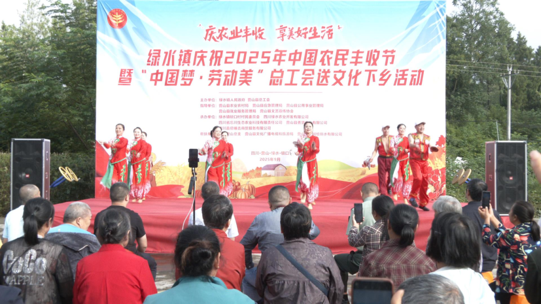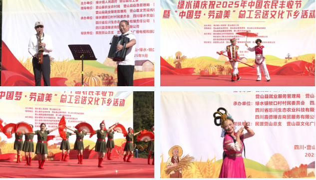 为丰富职工群众精神文化生活,助力乡村振兴,9月24日,由绿水镇人民政府、营山县总工会主办的“绿水镇庆祝2025年中国农民丰收节暨‘中国梦·劳动美’总工会送文化下乡活动”在绿水镇锁口村隆重举行。