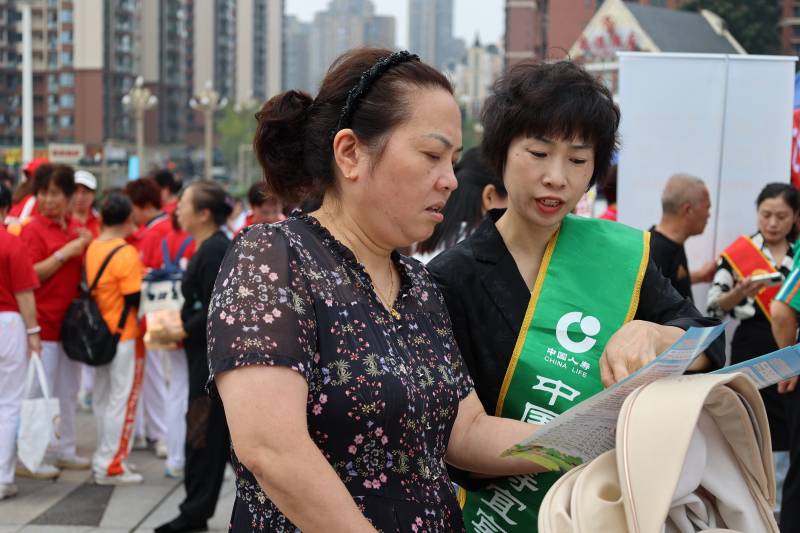 活动期间,中国人寿宜宾市分公司充分发挥保险企业的社会责任担当,组织党员志愿者及工作人员在活动现场为老年人群普及金融知识与防诈反骗常识,耐心讲解老年人专属保险保障服务内容,进一步增强老年群体的金融安全意识和风险防范能力。