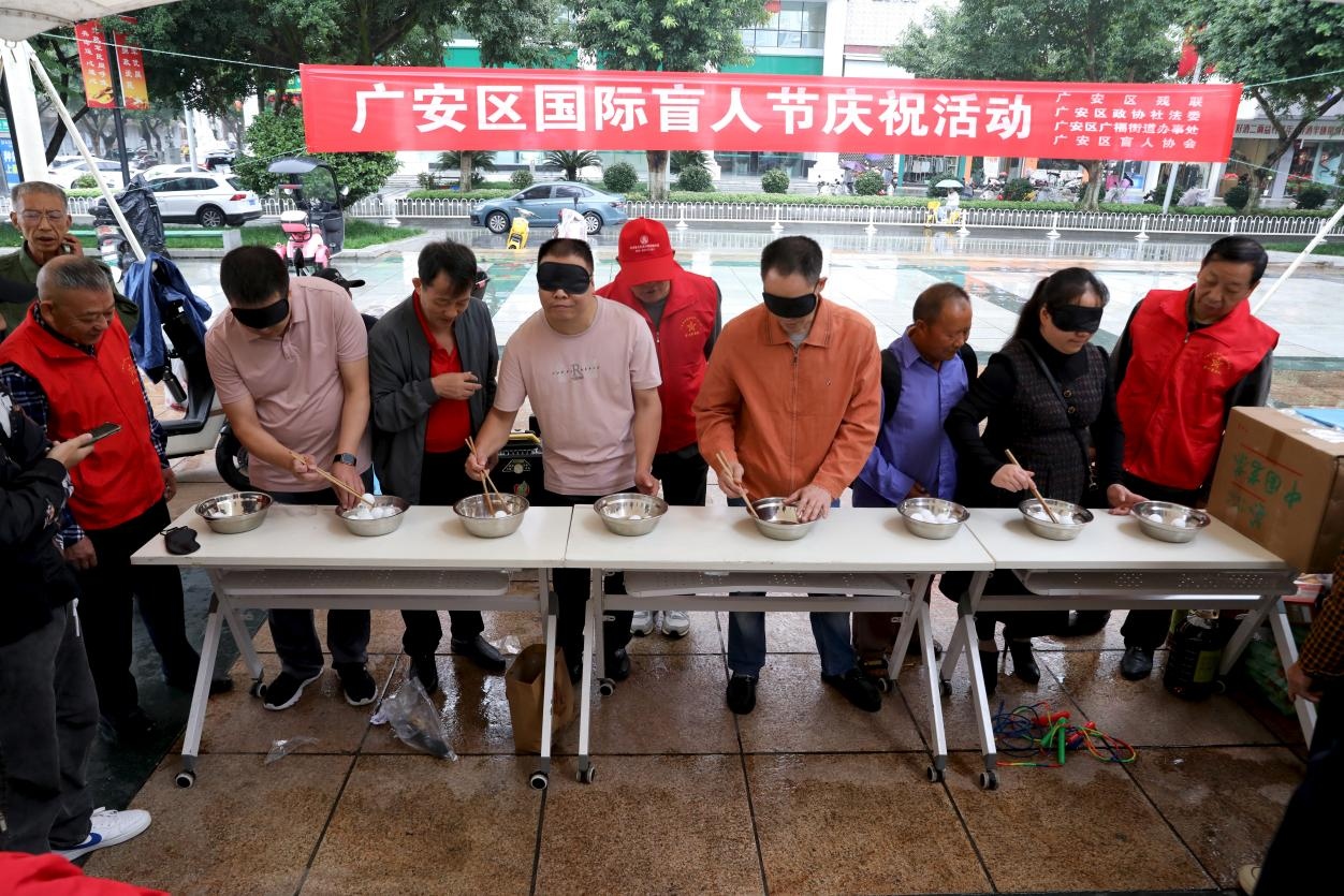 10月15日是第42个国际盲人节,当日,广安区残联联合广安区政协社法委、广福街道办事处在思源大道金融广场举办趣味运动会,让盲人朋友们在趣味运动中感受快乐,并通过按摩等专业技能,向广大市民展现良好的精神风貌和文明新风。