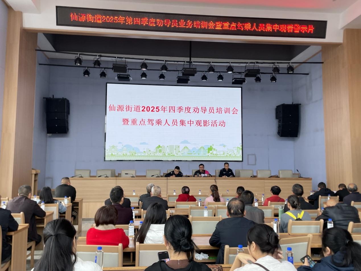 仙源街道开展2025年第四季度交通劝导员业务培训会暨重点驾乘人员集中观看警示片活动