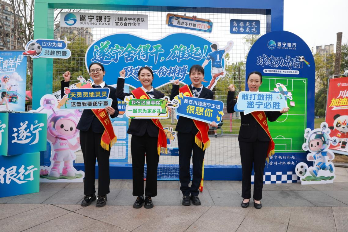 “斗城敞开怀,球迷嗨起来!”“只要舍得拼,一脚定乾坤!”川超嘉年华现场,遂宁银行“遂银(赢)助威站”早已成为人气核心,吸引市民与球迷驻足互动。
