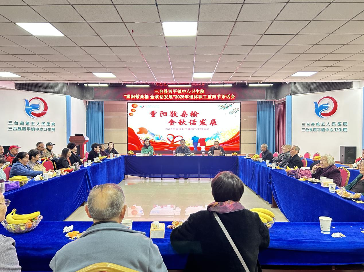 金秋送爽,情暖重阳。为弘扬中华民族尊老、敬老、爱老、助老的传统美德,增强退休职工的归属感和幸福感,10月29日上午,三台县西平镇中心卫生院举办重阳节茶话会,与退休职工齐聚一堂,共庆佳节。医院领导班子及相关职能部门负责人参加活动。