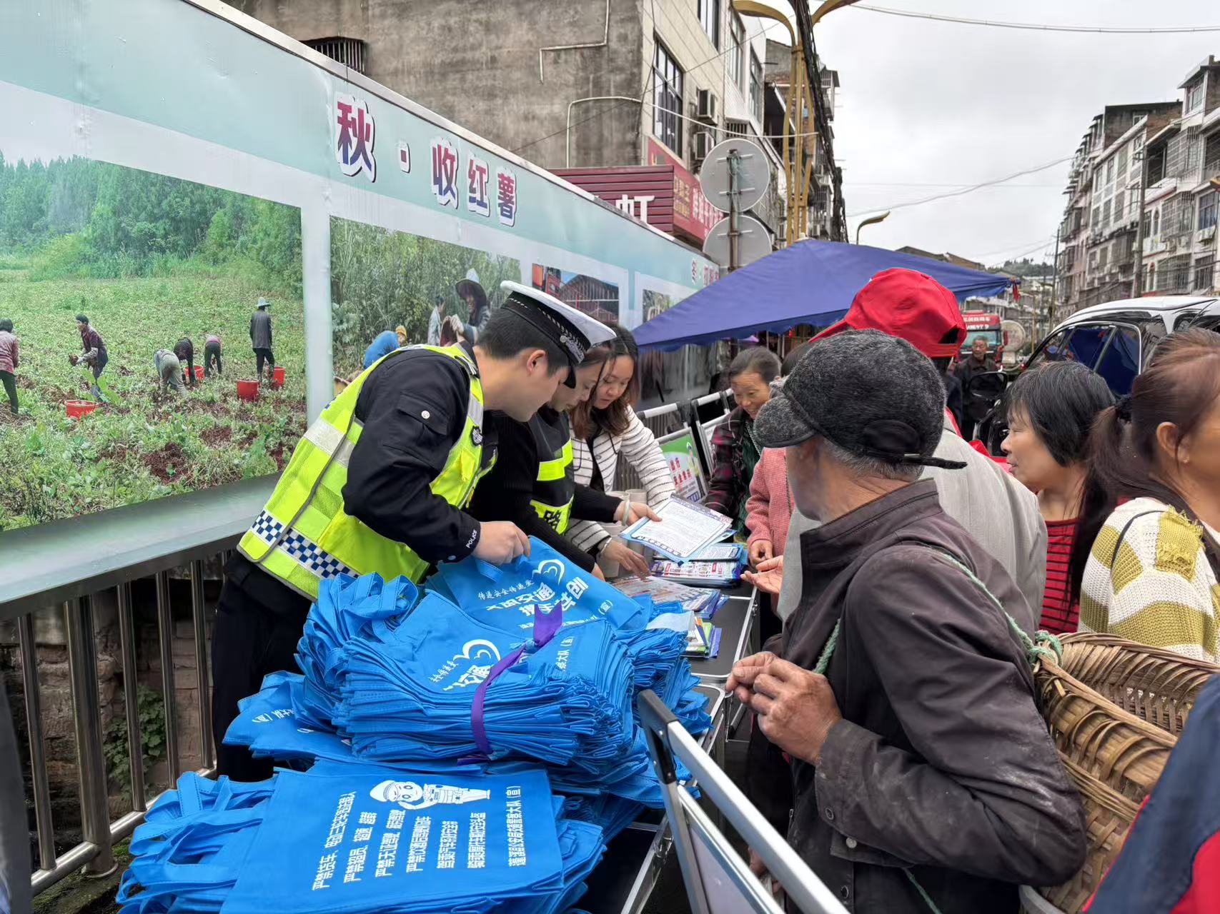 活动中,宣传交警通过搭建交通安全咨询台、摆放宣传展板、发放宣传资料、发放宣传小礼品等形式,向赶集群众和摊主普及秋季安全出行知识,用通俗易懂的语言剖析近期农村地区发生的交通事故典型案例,分析交通事故发生的原因,讲解酒驾、无牌无证、驾乘车不系安全带、摩托车和电动车不佩戴安全头盔、农用车及三轮车违法载人、报废车上路等交通违法行为的危害和后果。引导群众自觉摒弃交通陋习、遵守交通安全法律法规,时刻绷紧交通安全弦。
