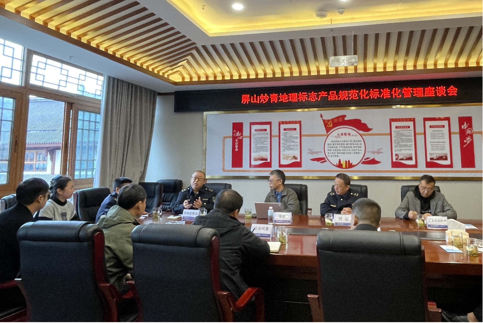 10月24日下午,屏山县市场监管局在屏山炒青园组织召开了“屏山炒青地理标志产品规范化标准化管理座谈会”。会议重点讨论了《屏山炒青茶团体标准》和《屏山县屏山炒青标准化管理办法》的制定工作。会议指出,地理标志不仅是产品的“身份证”,更是区域产业的“生命线”,要通过“统一标准、统一管理、统一品牌”,实现从“有好茶”到“卖好名茶”的关键跨越。会议强调,要筑牢管理根基,尽快完善并出台标准化管理办法;强化品牌应用,确保龙头企业地理标志使用率达到100%,覆盖企业不少于20家;开拓市场空间,力促产业增收1亿元;夯实能力基础,全面提升从业人员规范使用和品牌维护能力。