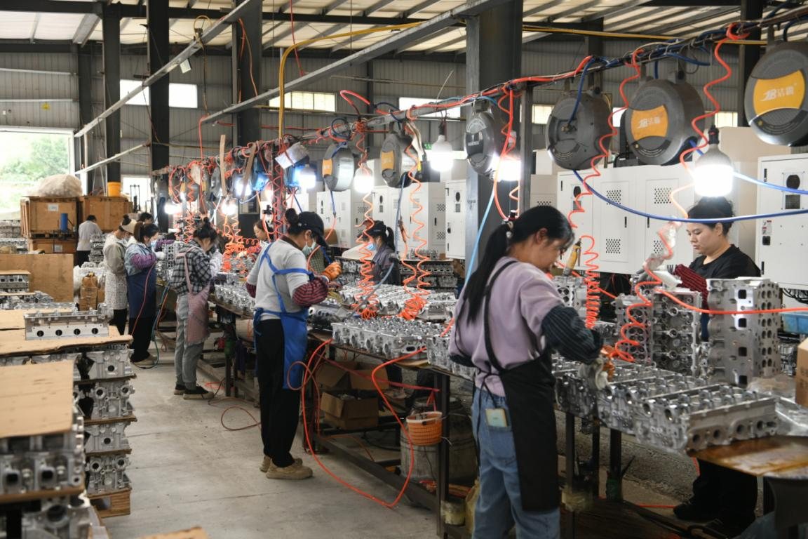 (图为邻水县福佳机械有限公司员工正在生产汽车发动机缸盖 )