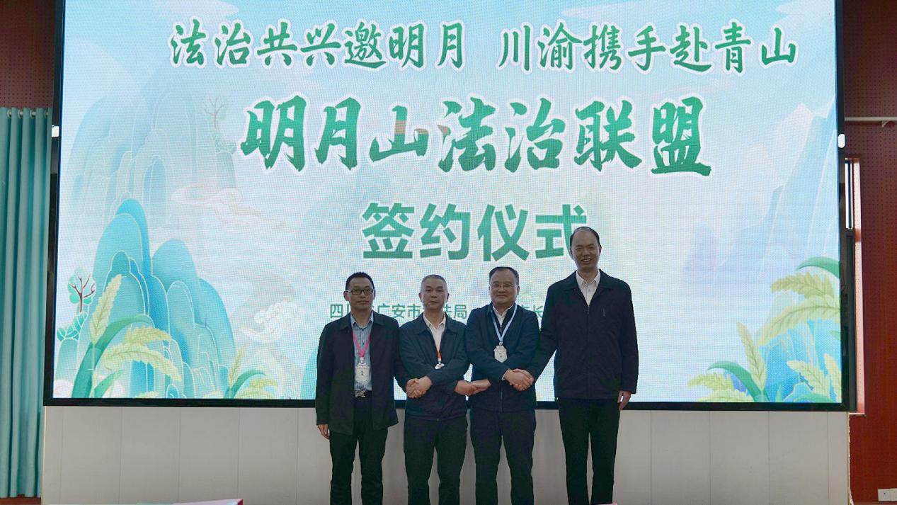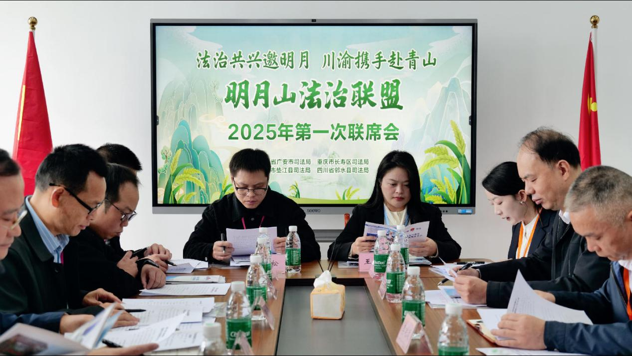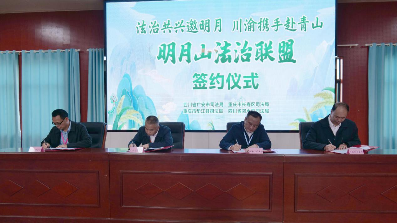 近日,四川省广安市司法局、邻水县司法局与重庆市长寿区司法局、垫江县司法局“明月山法治联盟”合作协议成立仪式暨第一次联席会在邻水县举行。此次活动旨在凝聚川渝两地司法行政合力,携手为明月山绿色发展示范带注入法治动能,筑牢跨区域生态法治屏障,助力成渝地区双城经济圈建设高质量发展。