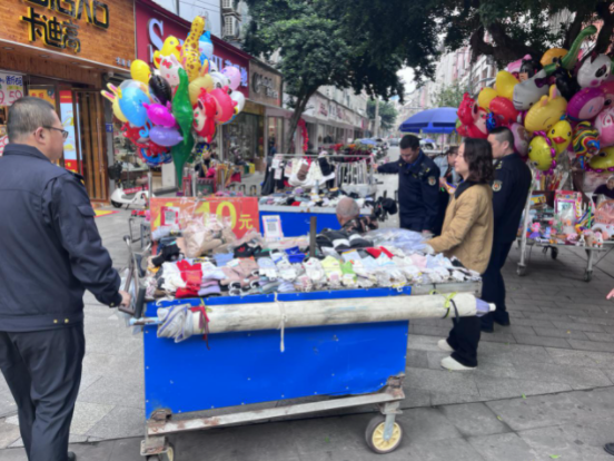 整治过程中,执法人员秉承“文明执法、规范执法”理念,通过“定点排查+动态清理”的模式,重点对步行街主街、出入口及人流密集区开展整治。对游商进行耐心劝导,细致讲解城市管理相关法规以及乱摆乱放的危害,引导游商有序到大南街临时便民点规范经营,并督促游商在经营期间做到地面随脏随扫,保持摊架、摊棚和地面清洁,确保周边环境干净整洁、有序规范。此次行动,累计出动执法人员50余人次,劝导游商占道经营100余起,清理杂物乱堆30余处。