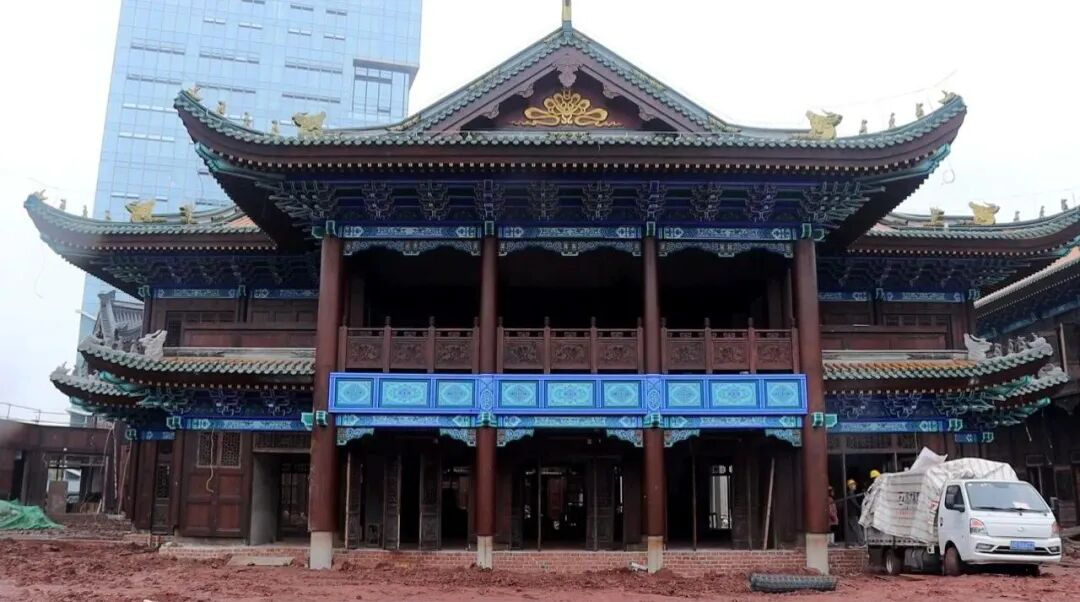 在11号楼施工现场,机械轰鸣,焊花飞溅,200余名工人正在各自岗位上紧张作业。机械舞台搭建、通风设备安装、仿古木作制作安装等工序有序推进,现场呈现一派热火朝天的施工景象。项目现场负责人告诉笔者,为确保这一文化地标工程按期交付,项目部采取多班组协同作业模式,合理调配施工机械和人员,严格把控施工质量,确保各道工序无缝衔接。