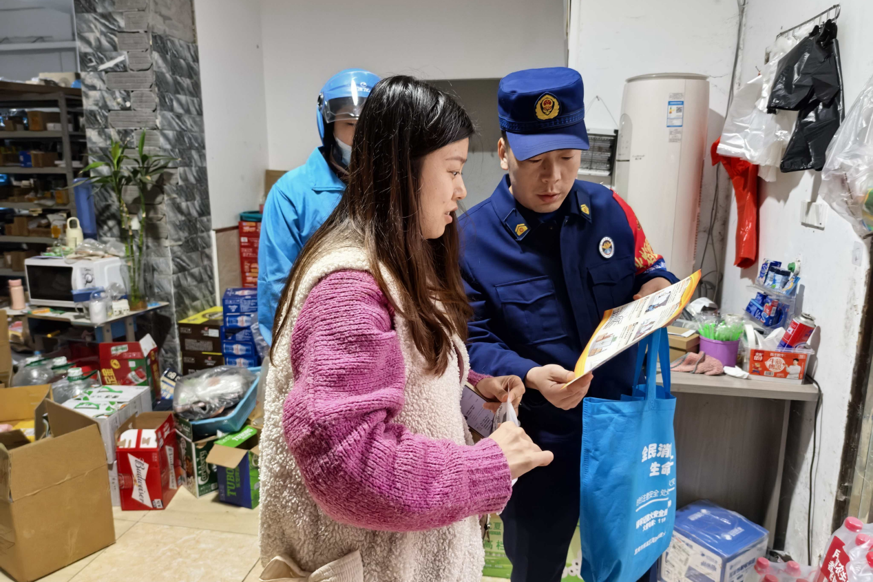为扎实做好社会面火灾防控工作,有效防范化解安全风险,11月10日,南溪区消防救援大队防消联勤防火班走进仙源北街,对沿街小超市、快递驿站和小诊所等“九小场所”集中开展消防安全隐患排查与宣传活动。