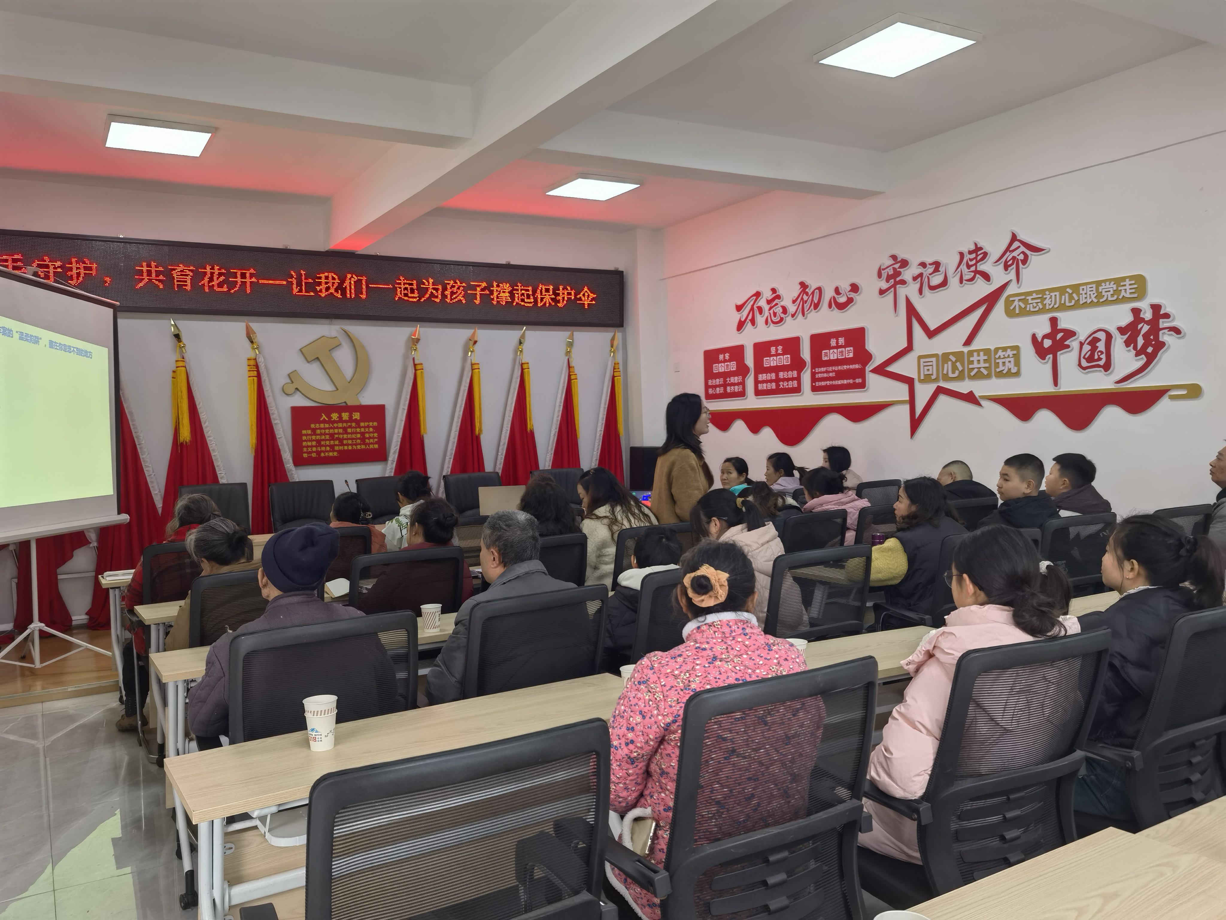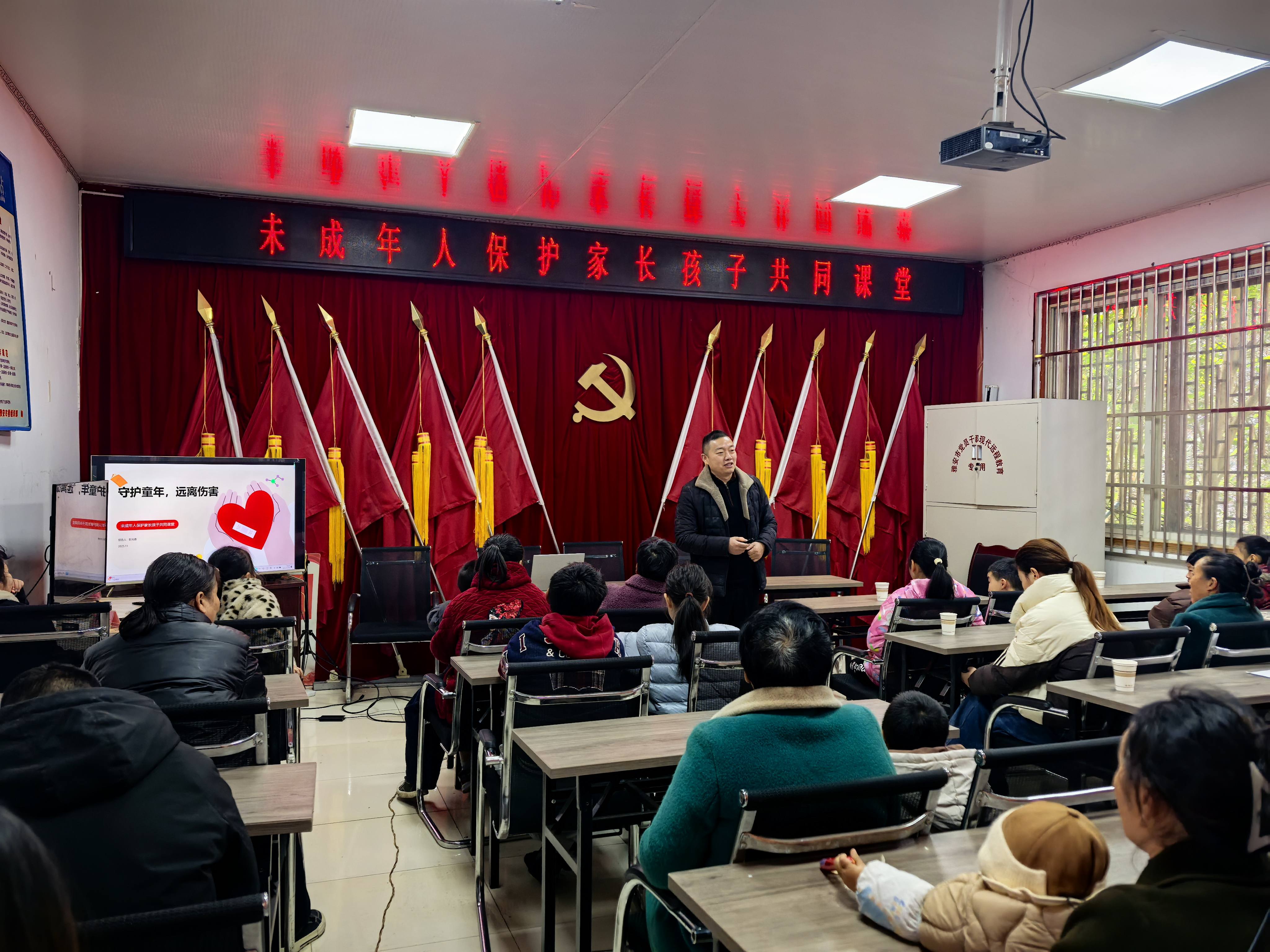 活动中,家庭教育老师们结合农村家庭实际,聚焦生活中常见的育儿困惑与典型案例,未成年人安全保护等核心内容,以理论+案例的形式,用通俗易懂的语言,深入浅出地讲解了亲子有效沟通、良好习惯培养、情绪管理、防范意外伤害等知识,引导家长们树立正确的家庭教育观,掌握科学的教育方法,明确自身在未成年人保护中的法定责任。针对留守儿童监护缺失、孩子自我保护意识薄弱等问题,老师详细讲解了《中华人民共和国未成年人保护法》《中华人民共和国刑法》等相关法律条款,明确家长监护责任,活动形成了“家校社协同育人”的良好氛围。