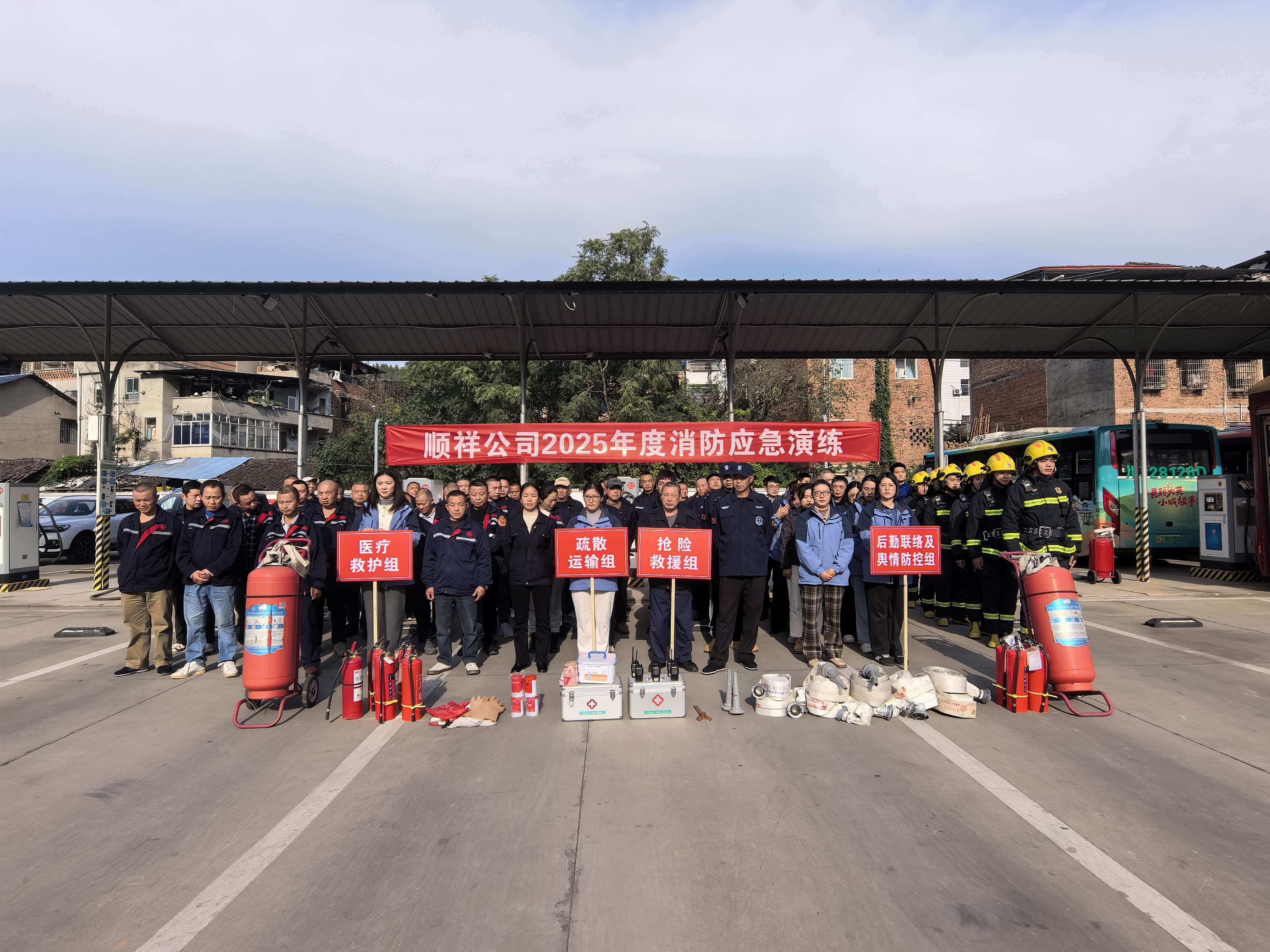 以练筑防,筑牢出行“安全盾”——大英消防深入顺祥公司组织开展公交消防应急演练