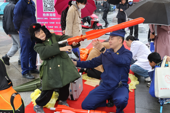 “小朋友,知道叔叔手中这个‘大家伙’是什么吗?它叫救生抛投器,遇到有人落水或高层被困,能把救生圈、绳索抛到十几米外救人呢!”在兴文县光明社区市民广场的消防科普趣味嘉年华活动现场,工作人员一边演示,一边用通俗易懂的语言讲解,吸引了不少居民驻足体验。