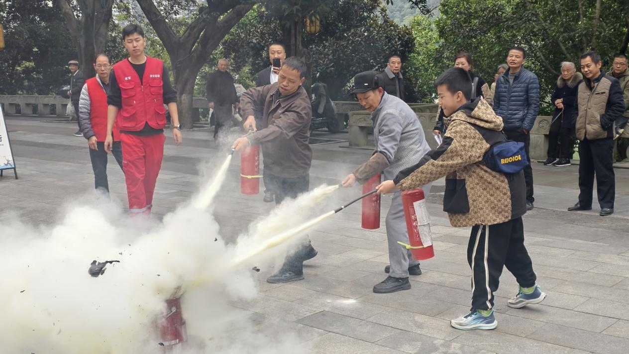 活动现场,护民消防的马教官结合典型火灾案例,为大家详细讲解日常生活中的安全隐患及防范要点,重点介绍灭火器、电气设备等的正确使用方法,并现场教学隐患排查的具体步骤。在随后的实操环节,参训人员在教官的指导下,有序开展逃生疏散演练,学习火场自救技巧,并逐一操作灭火器进行灭火练习。这种“理论讲解+实操演练”相结合的方式帮助参训人员全面掌握消防安全基本技能。