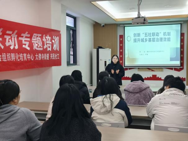 为进一步深化“五社联动”机制建设,同时聚焦基层社会工作者、网格员及社区社会组织从业者的团队协作提升与心理压力疏解需求,2025年11月25日,在前锋区民政局的指导下,前锋区社会组织孵化培育中心联合重庆兴民社会工作服务中心于大佛寺街道幸福社区成功举办“前锋区五社联动专题培训活动”,以理论赋能+实操减压的创新形式,为基层服务队伍注入新活力。