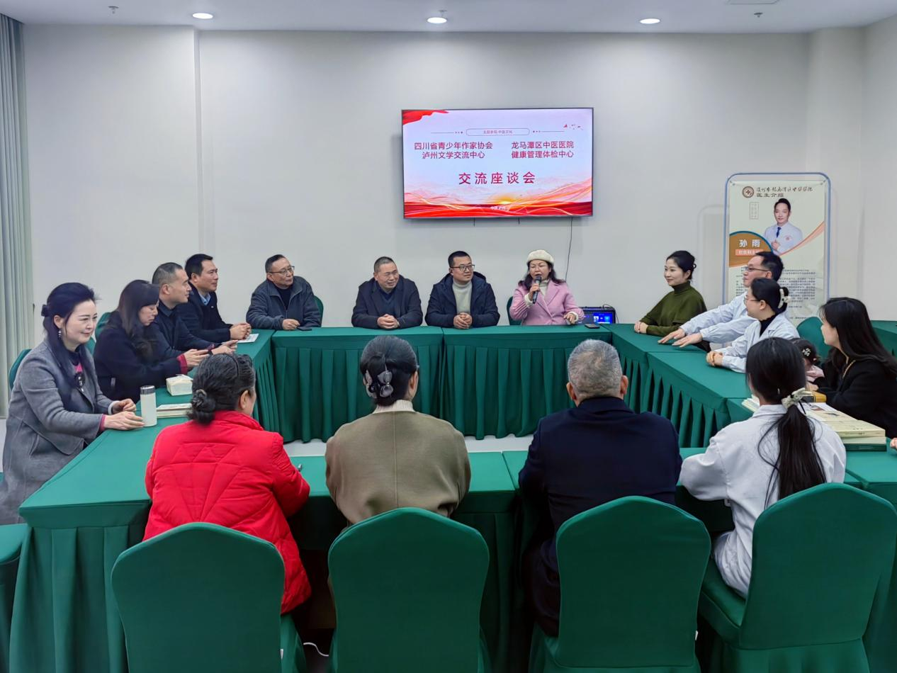 11月29日,四川省青少年作家协会泸州办事处(泸州文学交流中心)组织了一场文化与健康“双向奔赴”之旅主题采风活动。泸州市作协副主席涂拥(中国作协会员)、龙马潭区中医医院副院长祝焱、泸州市新联会副会长王昌海,办事处主任游明刚、执行主任周跃刚,以及在泸会员及特邀嘉宾20余人,走进泸州市龙马潭区中医医院,感受中医文化魅力。