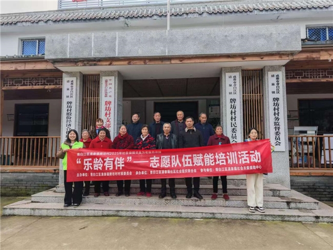 牌坊村坐落于青白江区清泉镇山区,受地理区位限制,年轻劳动力大量外流至城市务工或求学,村庄 “老龄化、空巢化” 特征日益凸显,养老服务面临多重困境。“乐龄有伴” 老年人志愿服务项目由牌坊村村委会主办、青白江区清泉镇社区社会组织联合会专业承办,聚焦全村常住户籍 60 岁以上老年群体,重点攻坚 80 岁以上高龄老人、独居失能老人等483人,特殊群体的养老服务需求。