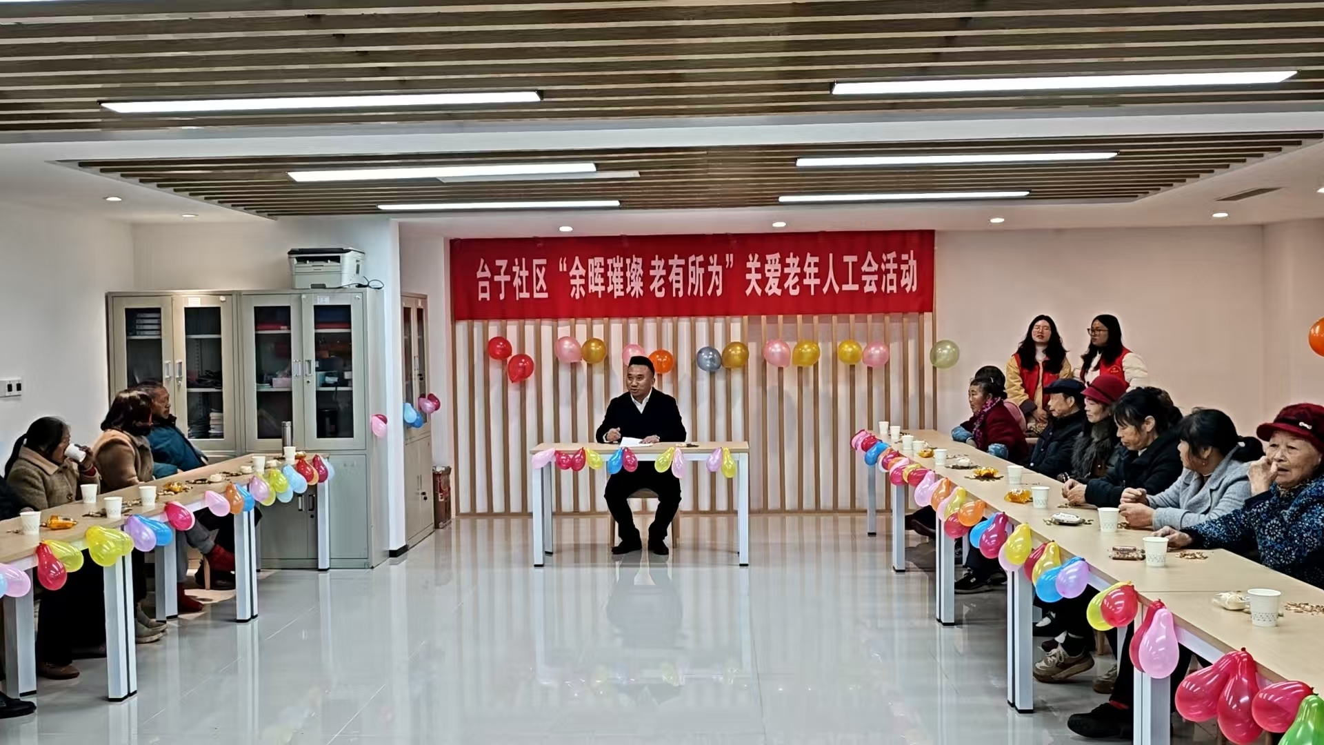 为弘扬尊老敬老爱老传统美德,丰富辖区退休职工及老年群体的精神文化生活,近日,广安经开区奎阁街道在台子社区开展“余晖璀璨 老有所为”关爱老年人工会活动。