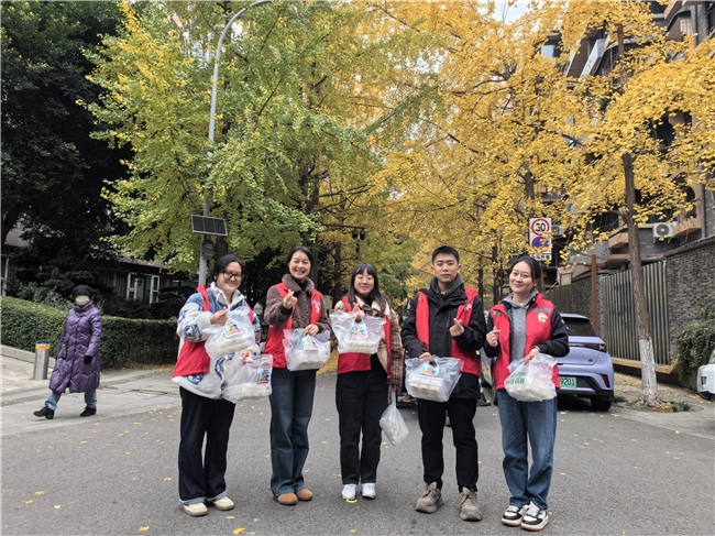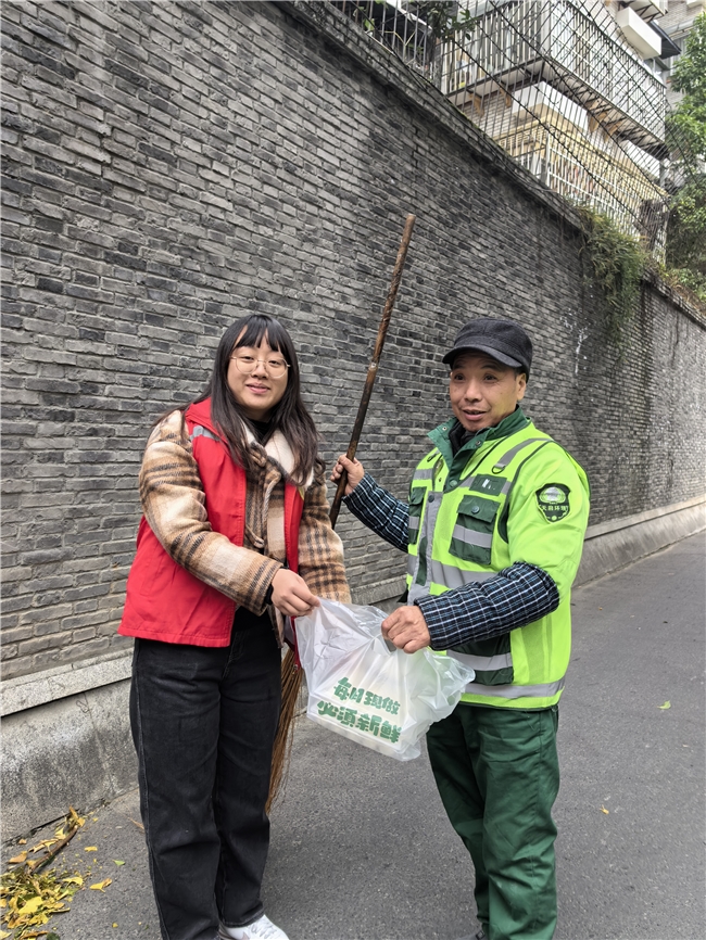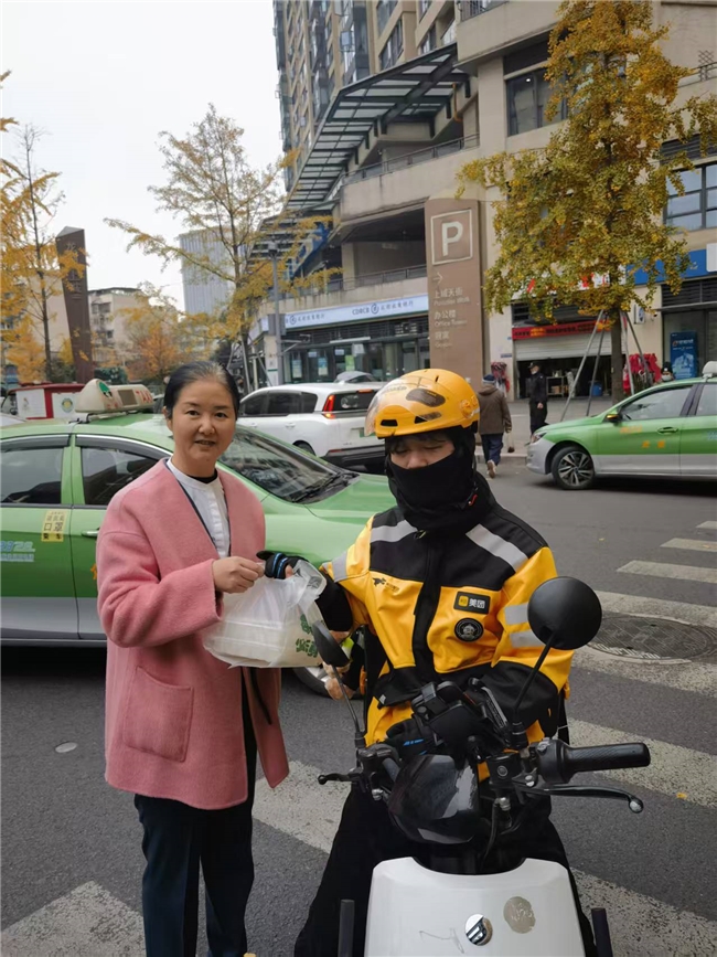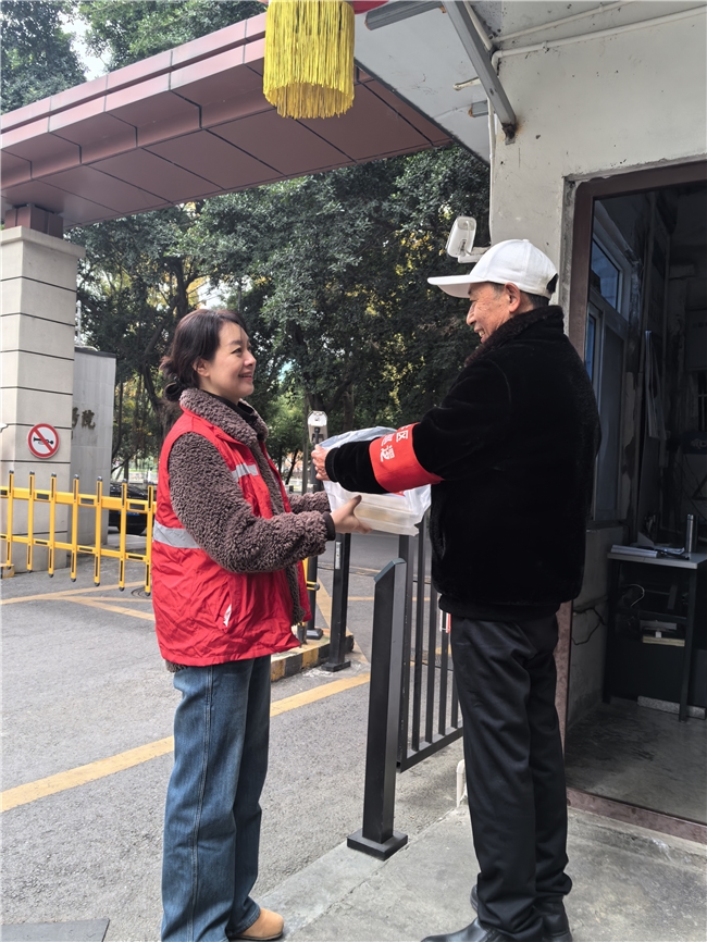 饺子包好后,志愿团队手提定制的“五丁社区暖心袋”,带着满满诚意走进辖区院落、沿街商铺、城市街道,将热气腾腾的饺子送到外卖小哥、出租车司机、环卫工人、门卫等一线劳动者手中。“没想到社区这么贴心,寒冬里收到这份热饺子,心里暖烘烘的,感觉自己的辛苦付出都被看见、被尊重。”外卖小哥王师傅捧着温热的饺子,脸上洋溢着感动的笑容。环卫工人张大姐动情地说:“这份礼物太实在了,不仅暖了胃,更暖了心,让我们感受到了城市的温度和社区的关怀。”坚守岗位的门卫大爷也感慨道:“社区把我们这些一线工作者放在心上,这份认可比什么都珍贵,以后会更用心守护辖区安全。”