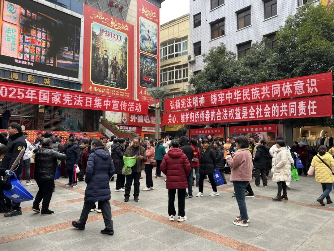 12月4日,在第12个国家宪法日到来之际,万源市以“学习宣传贯彻习近平法治思想,推动宪法深入人心”为主题,开展多层次、广覆盖、接地气的宪法宣传系列活动,通过“线下集中宣传+线上直播互动+全域同步联动”的模式,让宪法精神走进千家万户,在全社会营造尊法学法守法用法的浓厚氛围。