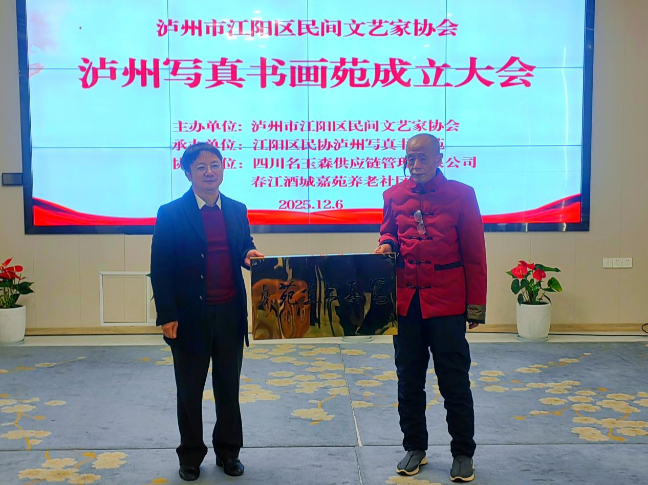 会议伊始,江阳区民协副主席白萍宣读了关于成立“江阳区民协泸州写真书画苑”的批复文件。随后,江阳区民协主席陈泽治为书画苑授牌,泸州写真书画苑院长张宜坤郑重接过牌匾,现场响起热烈掌声。