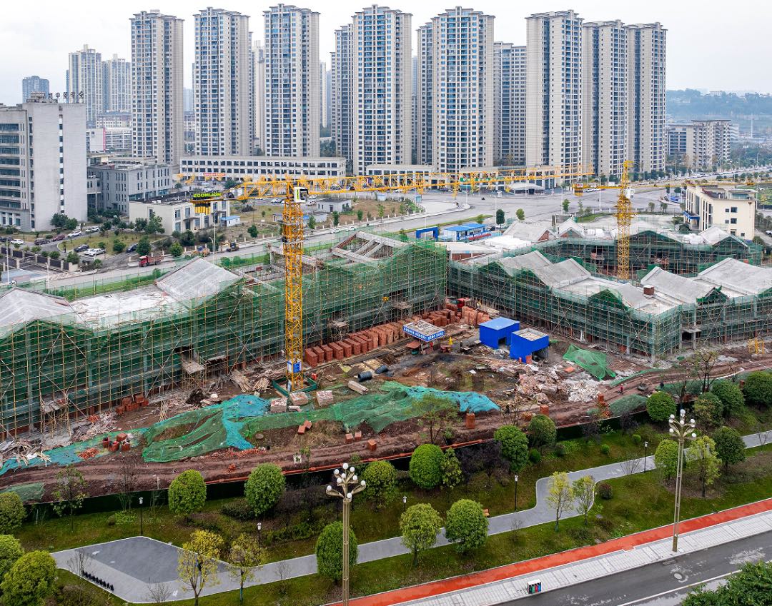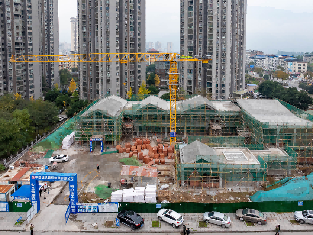 12月5日,在华蓥华龙街道射红庙托育服务中心建设现场,塔吊林立、机器轰鸣,工人们正紧张有序进行墙体抹灰、围墙砌砖等作业。项目占地约29亩、建筑面积约8600平方米、规划设置托位450个。