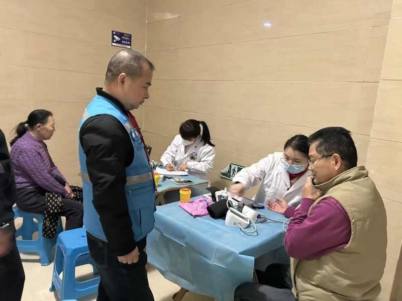 活动开始前,洗马池社区网格员提前到场布置场地,合理设置服务点位和指引标识,营造安全、有序的诊疗环境。活动现场,白沙湾卫生服务中心医护人员为居民逐一测量血压、血糖,并围绕高血压、糖尿病等常见慢性病开展随访评估,详细了解居民近期身体状况、用药情况及生活方式,结合检测结果进行针对性健康指导和用药建议。