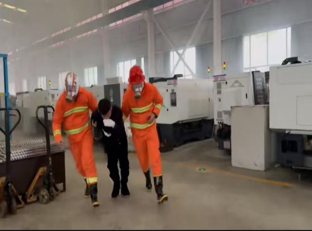 随着演练指令下达,模拟火情现场迅速启动应急响应机制。各应急小组立即按照应急预案分工,快速进入战斗状态:火情侦察组第一时间确认着火点及被困人员情况,灭火行动组携带灭火器、消防水带等器材果断开展初期灭火,疏散引导组有序组织员工弯腰捂鼻沿安全通道撤离,医疗救护组迅速对 “受伤人员” 进行止血、包扎等紧急处置。整个过程中,各小组反应迅速、配合默契,所有参演人员均在规定时间内安全撤离至指定集结点,“受伤人员” 得到及时有效救治,圆满完成各项演练任务。