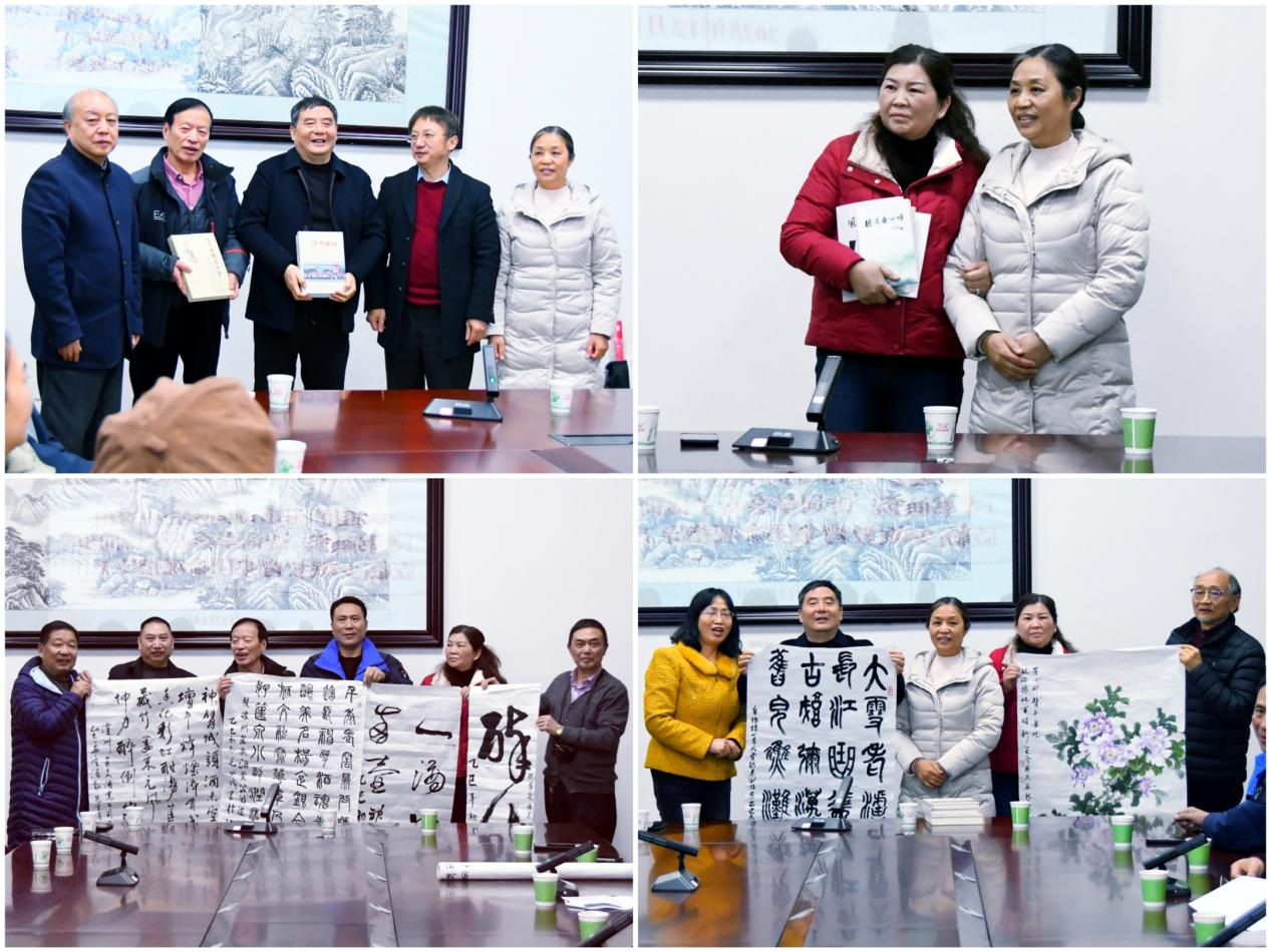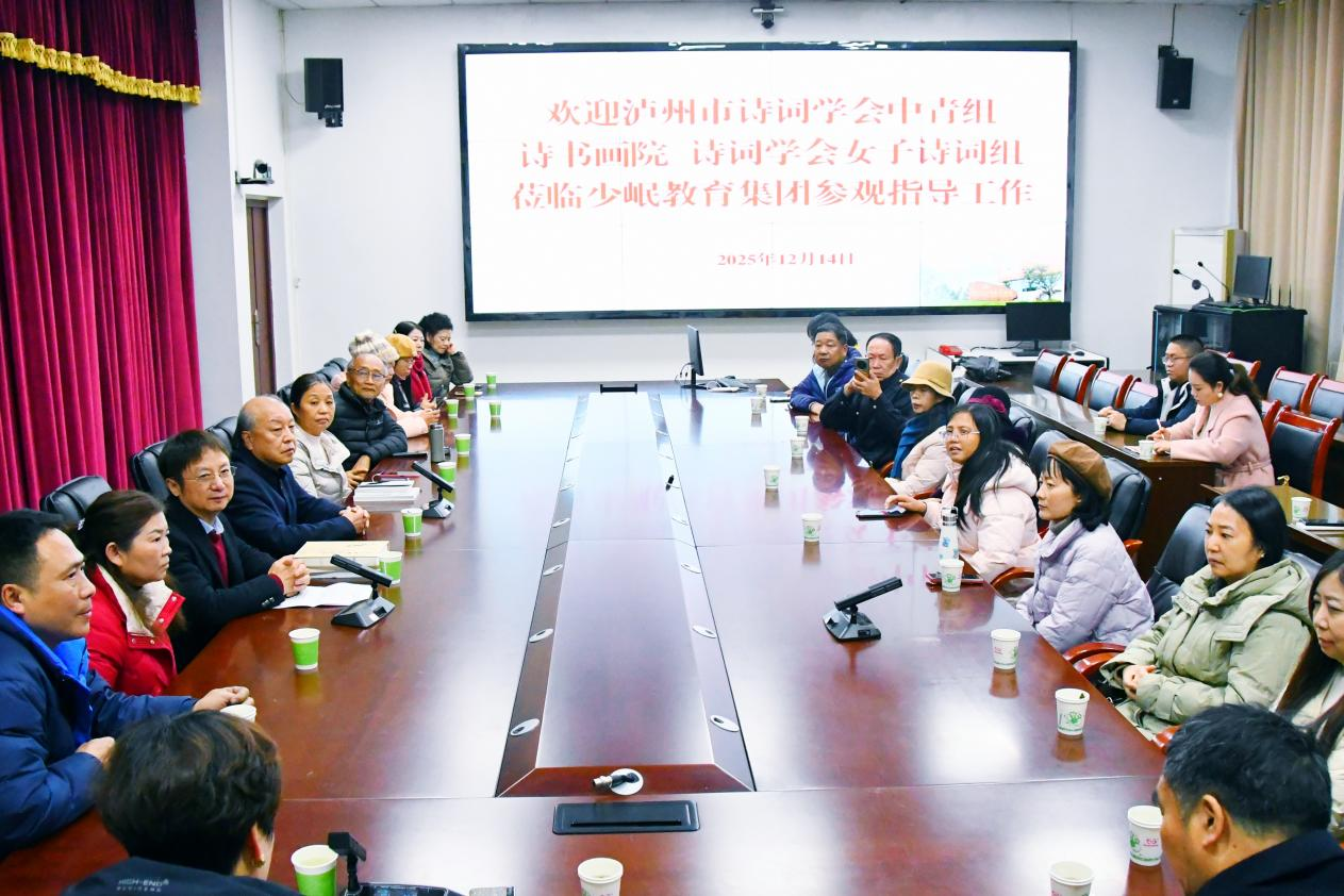 陈泽治在座谈会上简要介绍了泸州市诗词学会情况及此次活动参会领导、成员以及参观感悟。市诗词学会及部分会员向少岷教育集团慷慨赠送《泸州诗词》年度刊物、绘画作品、原创诗词作品和组刊,孙孝莲更是向饶敏赠送个人诗词专辑三部,以表情谊。