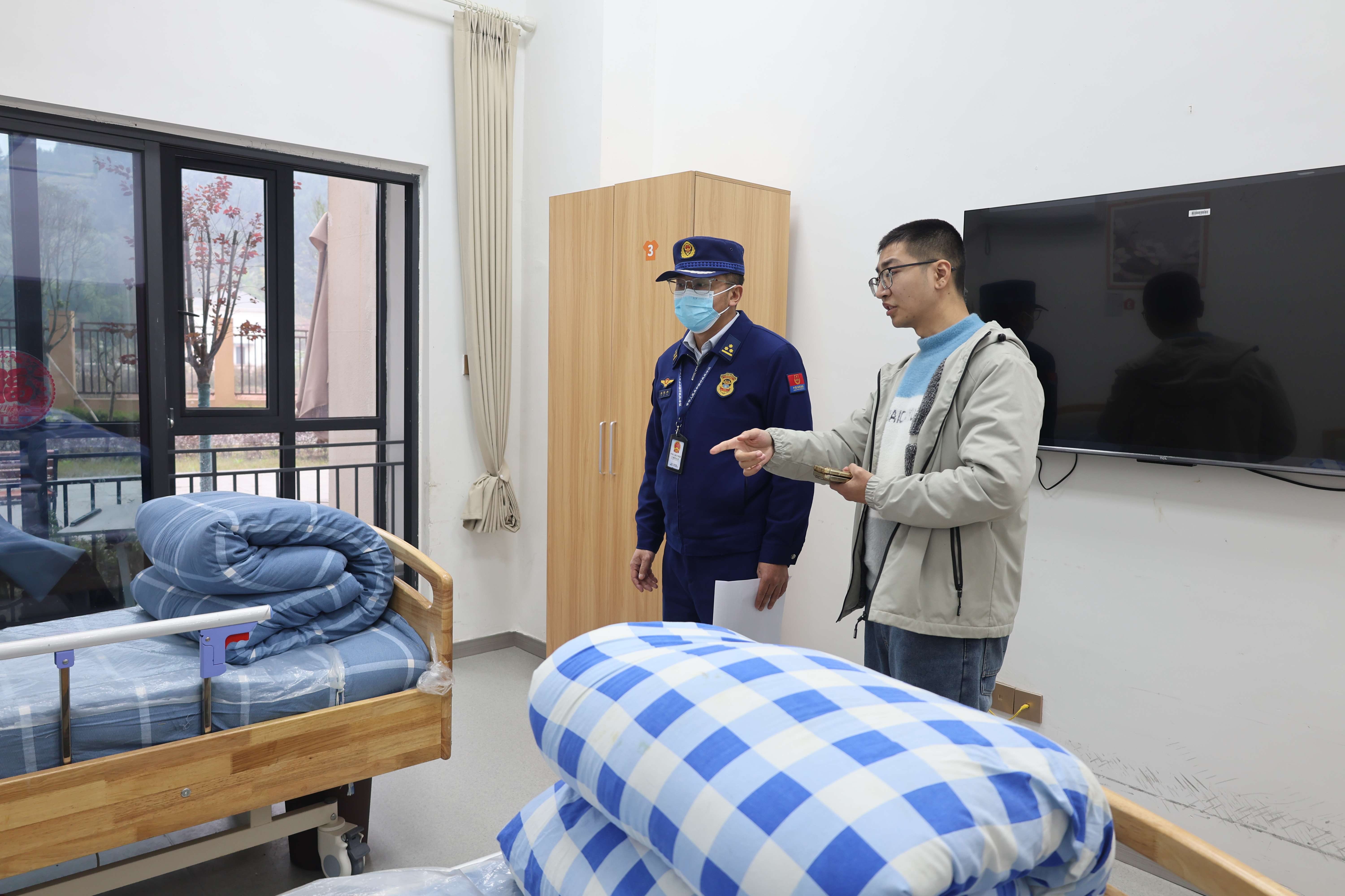 大英大队检查人员对照前期检查记录,对经开区、船山区养老机构重点问题进行逐项复核,并在“回头看”的基础上,开展全方位消防安全指导服务,深入养老机构的宿舍、食堂、活动室等重点区域,详细检查消防设施配备与维护、电气线路敷设、疏散通道和安全出口畅通情况等,现场指出日常管理中易被忽视的消防安全细节,提出针对性整改建议,并重点强调老年人行动不便的特点,指导其制定更具针对性的应急疏散预案,确保在突发火情时能快速、安全地转移老年人员。