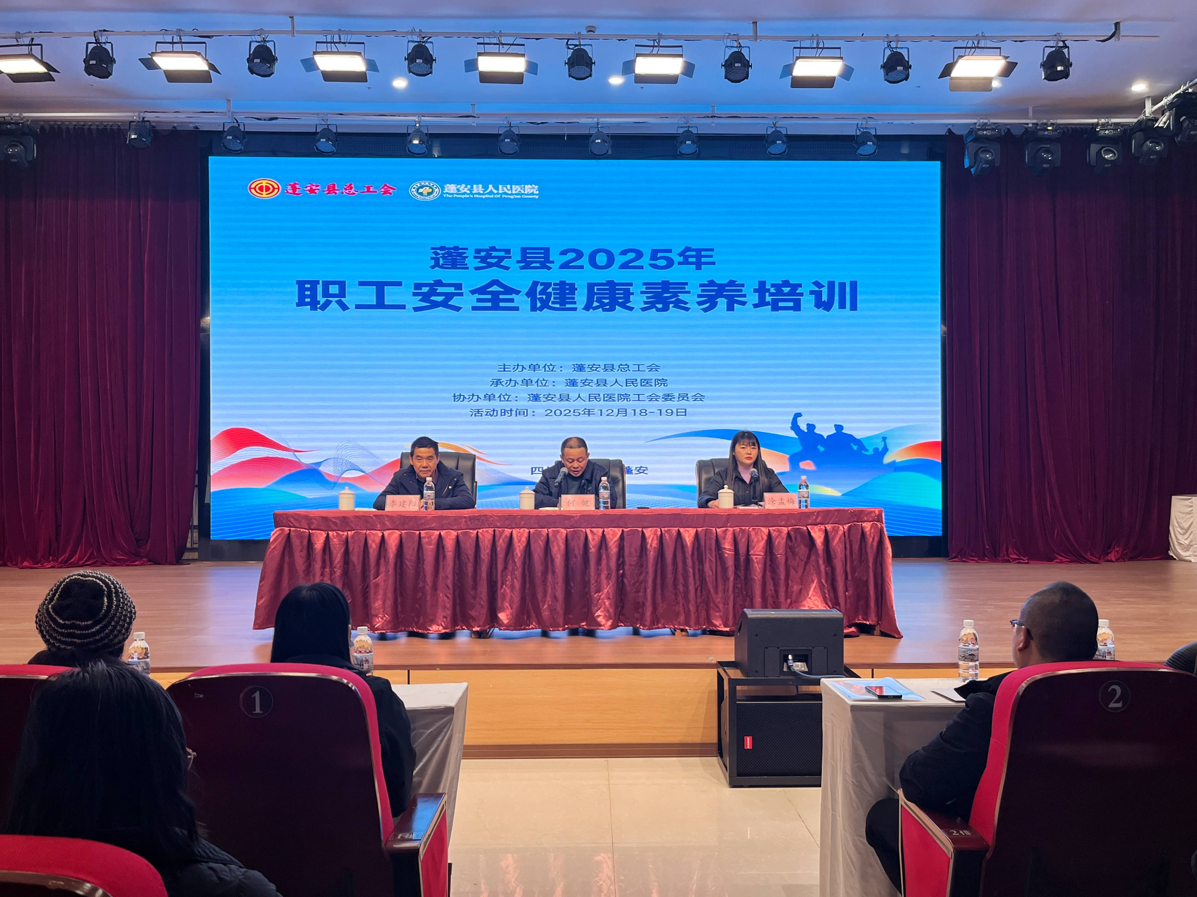 为深化产业工人队伍建设改革为重要抓手,全面提升蓬安县一线职工的安全健康素养,特别是制造业、建筑业、危险化学品等重点行业领域职工的应急处置能力和自我防护意识,12月18日,由蓬安县总工会主办、县人民医院承办的蓬安县2025年职工安全健康素质培训班正式拉开帷幕。县总工会党组书记、常务副主席何健出席开班仪式并讲话,县人民医院党委书记李建阳出席仪式,开班仪式由县总工会党组成员、副主席涂孟梅主持。