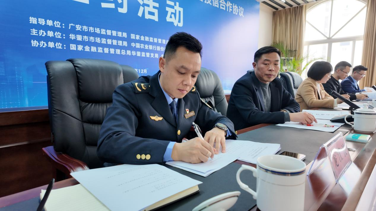 12月16日,广安华蓥市传来支持实体经济发展的新举措。华蓥市市场监督管理局携手国家金融监督管理总局华蓥支局、中国农业银行华蓥市支行,在华蓥山经开区举办了一场别开生面的签约活动。