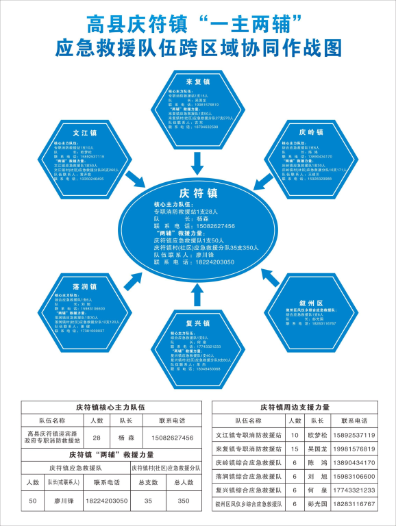 建强队伍体系,实现全域覆盖。按照“专常兼备、平战结合”原则,建成覆盖全县共242支2821人的“一主两辅”应急救援力量体系。突出“主力”专业性,以5个镇专职消防救援站和8个镇综合应急救援队为核心主力共121人,由县级部门统一管理、强化训练、配强装备,提升攻坚打赢能力。发挥“两辅”覆盖面的作用,整合各类基层力量,组建13支540人的镇级兼职救援队和216支2160人的村(社区)兼职救援分队,统一标识装备,负责前端风险排查、预警传递和协同救援,实现救援力量全域覆盖。