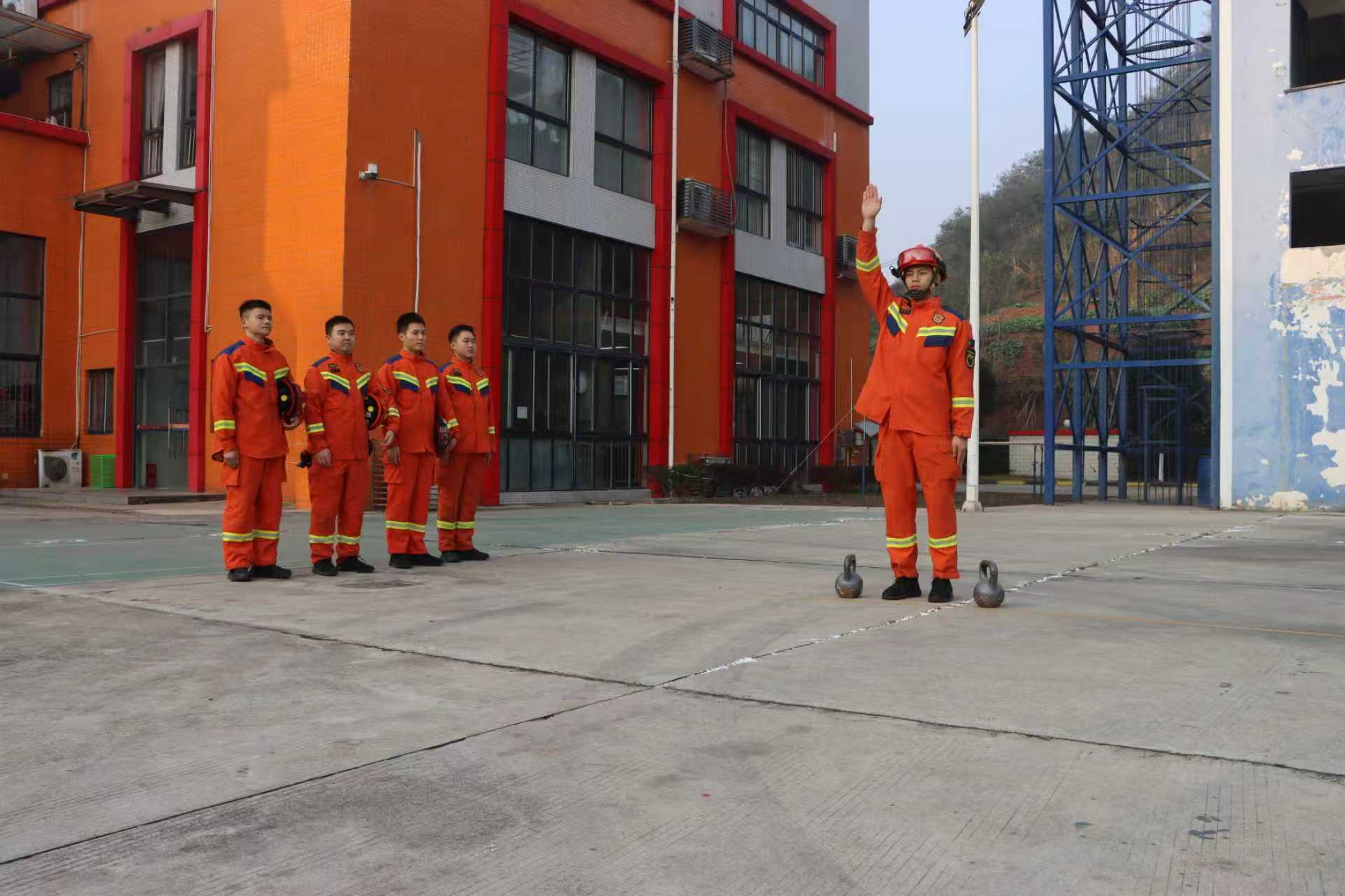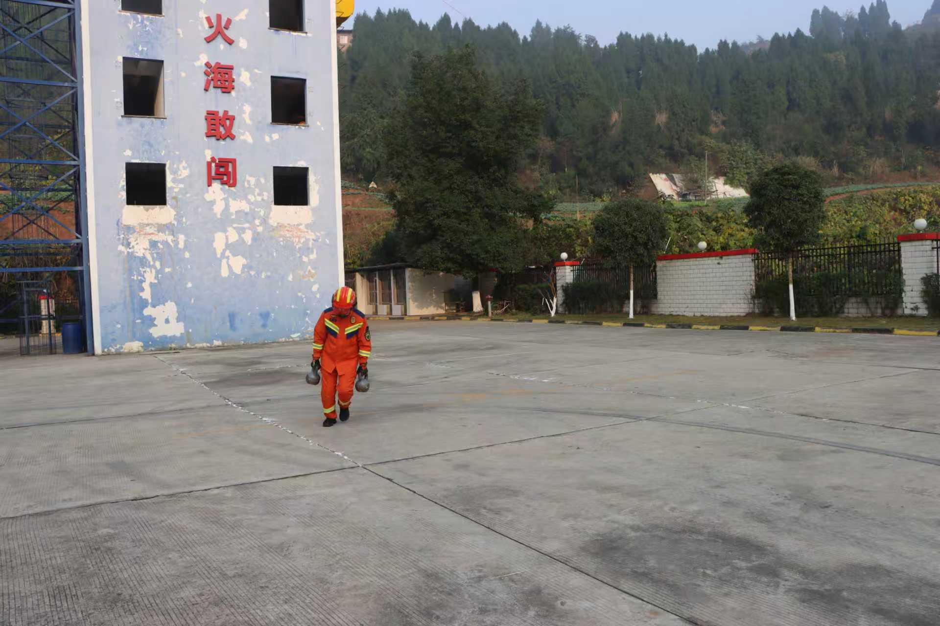 大英县文体路消防救援站组织开展负重折返跑专项训练