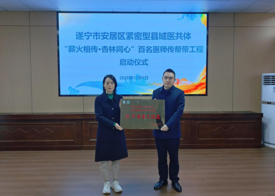 12月9日,安居区“薪火相传•杏林同心”百名医师师带徒工程启动大会在拦江镇中心卫生院圆满举行。这一举措标志着安居区医疗卫生人才培养“师带徒”模式从规划走向实践,优质医疗资源将持续下沉,让辖区群众在家门口就能享受到更专业的医疗服务。本次工程以“精准联动,携手共进”为主题,由安居区医共体总医院牵头组建高层次医疗人才团队,设立17个以团队带头人命名的专家工作室。