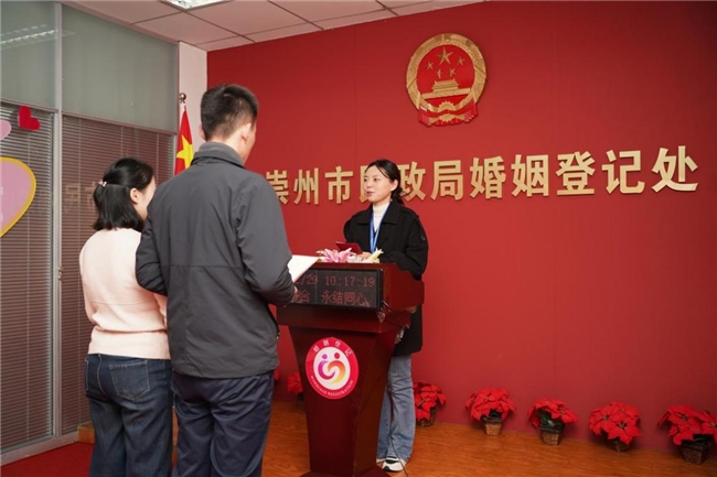 时值元旦佳节来临之际,为给新人送上充满仪式感的新婚祝福,2025年12月29日上午,一场以“蓉城喜事·要爱爱久”为主题的婚前辅导活动在崇州市民政局婚姻登记处温情开展。活动由崇州市民政局婚姻登记处主办、崇州市德森社会工作服务中心承办,紧扣“12.29(要爱爱久)”的浪漫谐音,为当日领证的新人打造了一场兼具温馨氛围与实用价值的甜蜜体验。