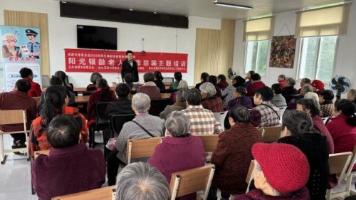 反诈防骗专题成为重中之重,先后在新津区、简阳市、成都东部新区等 5 个区域开展,通过真实案例拆解、诈骗话术模拟、防骗口诀记忆等互动形式,帮助老年人识别保健品骗局、电信诈骗、虚假投资等常见陷阱,筑牢财产安全 “防火墙”。郫都区中铁春台望养老院专场中,100 名老人认真记录防骗要点,现场互动提问络绎不绝。