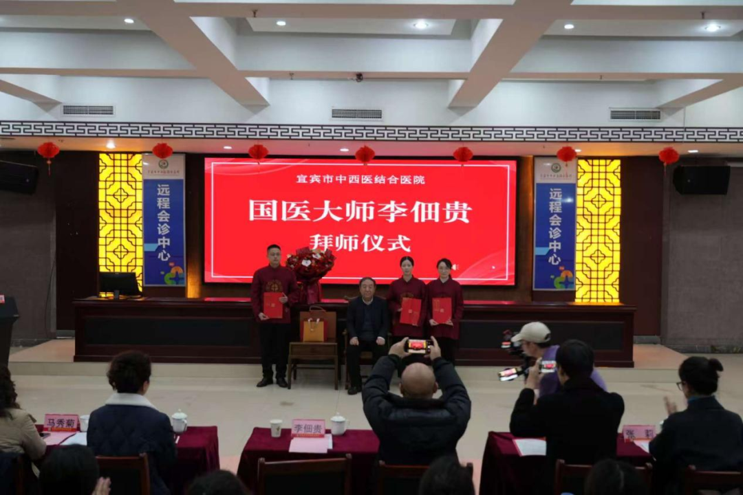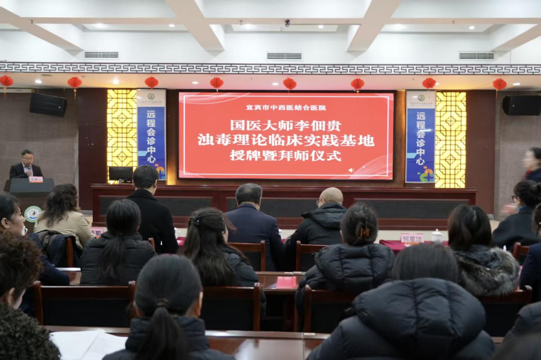 1月7日上午,国医大师李佃贵浊毒理论临床实践基地授牌暨拜师仪式在宜宾市中西医结合医院举行。此次活动由宜宾市中西医结合医院党委书记顾兴科主持,市中医药管理局副局长罗茂凌、区政府副区长何星洁、区卫生健康局党组书记、局长,区中管局局长余江、区中医药发展服务中心主任张莉,各位专家及中医药同仁齐聚一堂,共同见证这一中医药传承发展的重要时刻。