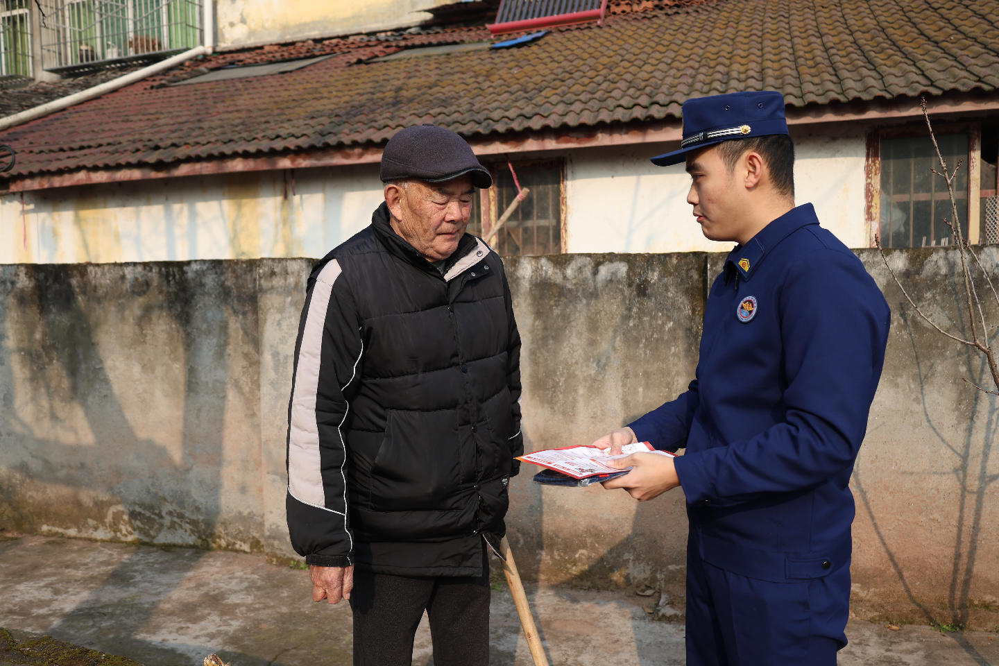 此次宣传深入河边镇经义村、卓筒井镇骑龙寨村、隆盛镇长滩市村以及天保镇木鱼新村,大英消防宣传员们在乡村主干道、集市等人员流动较大的区域向过往村民发放冬季消防安全宣传单,讲解家庭用火用电用气安全小知识。宣传员们主动走进街边聊天村民,以“唠家常”的方式融入其中,将消防安全知识自然融入闲谈之中,结合真实火灾案例,提醒村民们关注身边的消防安全细节,让大家在欢声笑语中掌握了实用的防火知识。为进一步强化宣传效果,大队还在河边镇经义村村委会办公室组织开展冬季消防安全集中培训,宣传员结合近期农村地区典型火灾案例,重点讲解了家庭防火“三清三关”、电动自行车安全充电、柴草堆放安全等常识。培训结束后,宣传员们还重点针对独居老人、留守儿童等特殊群体家庭开展“敲门入户”隐患排查行动,仔细检查村民家中电气线路是否老化破损、燃气管道是否存在泄漏、柴草是否违规堆放等情况,对于排查发现的隐患,宣传员们当场协助村民整改,手把手教村民如何自查家庭火灾隐患,反复叮嘱用火用电安全注意事项,用贴心服务为村民送上满满的安全感。