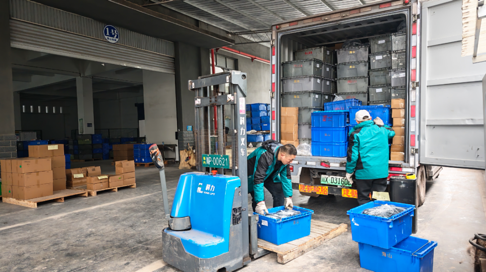 图为|工作人员正在为货车装载货物(钟涛 摄)