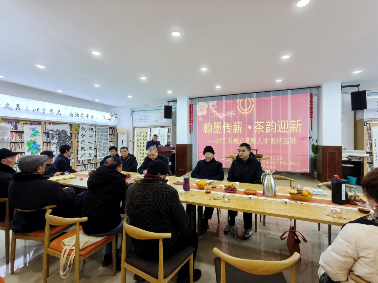 活动现场雅致庄重,古乐悠扬,茶席与书画作品相映成趣。活动伊始,相关负责人总结过往职工书画领域工作成效,期许传统书画艺术在职工群体中薪火相传。随后,茶艺师演绎传统茶艺,向书画名家奉茶致敬,拉开交流序幕。