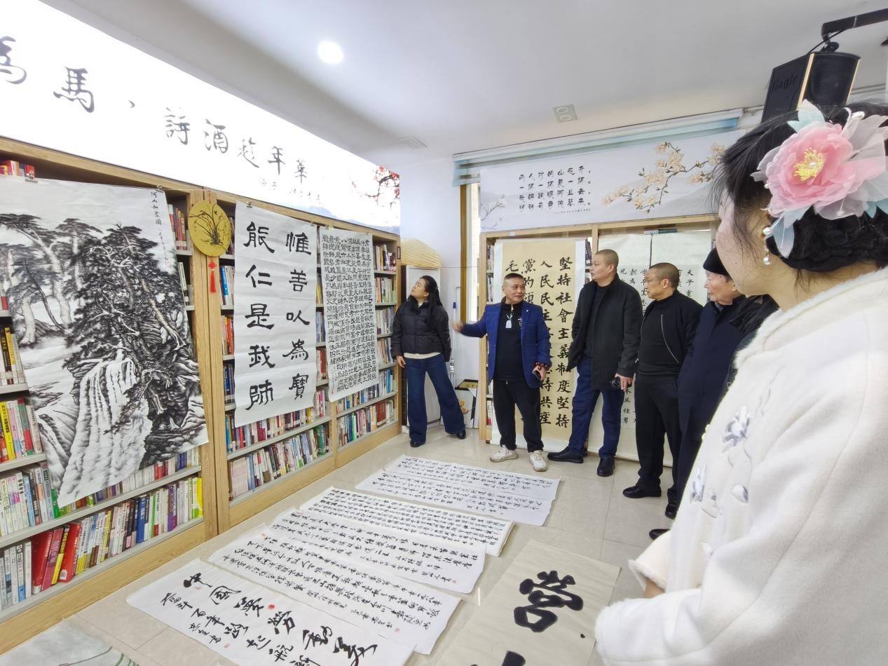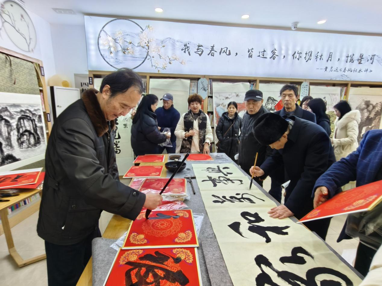 佳作赠福环节温情洋溢,爱好者向名家赠送含元旦祝福的书画作品,名家回赠亲笔墨宝并合影留念。