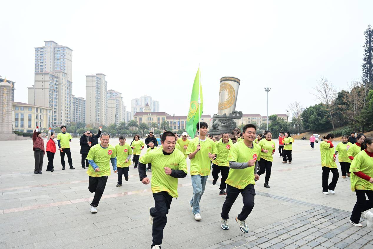 在文艺汇演结束后,全体领导、嘉宾、残友伙伴和志愿者共同上台合影留念,记录下这一温馨而难忘的时刻。随后,活动进入“悦跑迎新”环节。邀请刘丽、沈力、吴修全、蒋雪玲、廖漫波五位嘉宾移步至起跑点,为Q跑团活动鸣枪发令。在热烈的掌声中,跑友们在工作人员和志愿者的引导下有序排队,保持安全距离。随着“3……2……1……”的倒数声响起,嘉宾鸣枪,迎新悦跑正式开始。