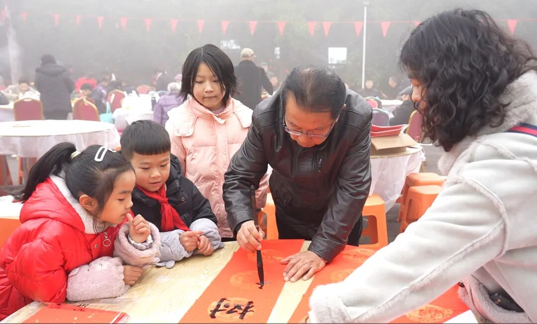 除了品尝美食,活动现场还精心设置了年俗体验,游客可亲手书写春联,或请书法家现场挥毫。一个个苍劲有力的“福”字、一副副寓意吉祥的对联,承载着新年的美好祈愿;孩子们则在家长的带领下,参与抓兔子、放鞭炮、乡村寻宝等趣味游戏,在玩乐中感受传统年俗的魅力。