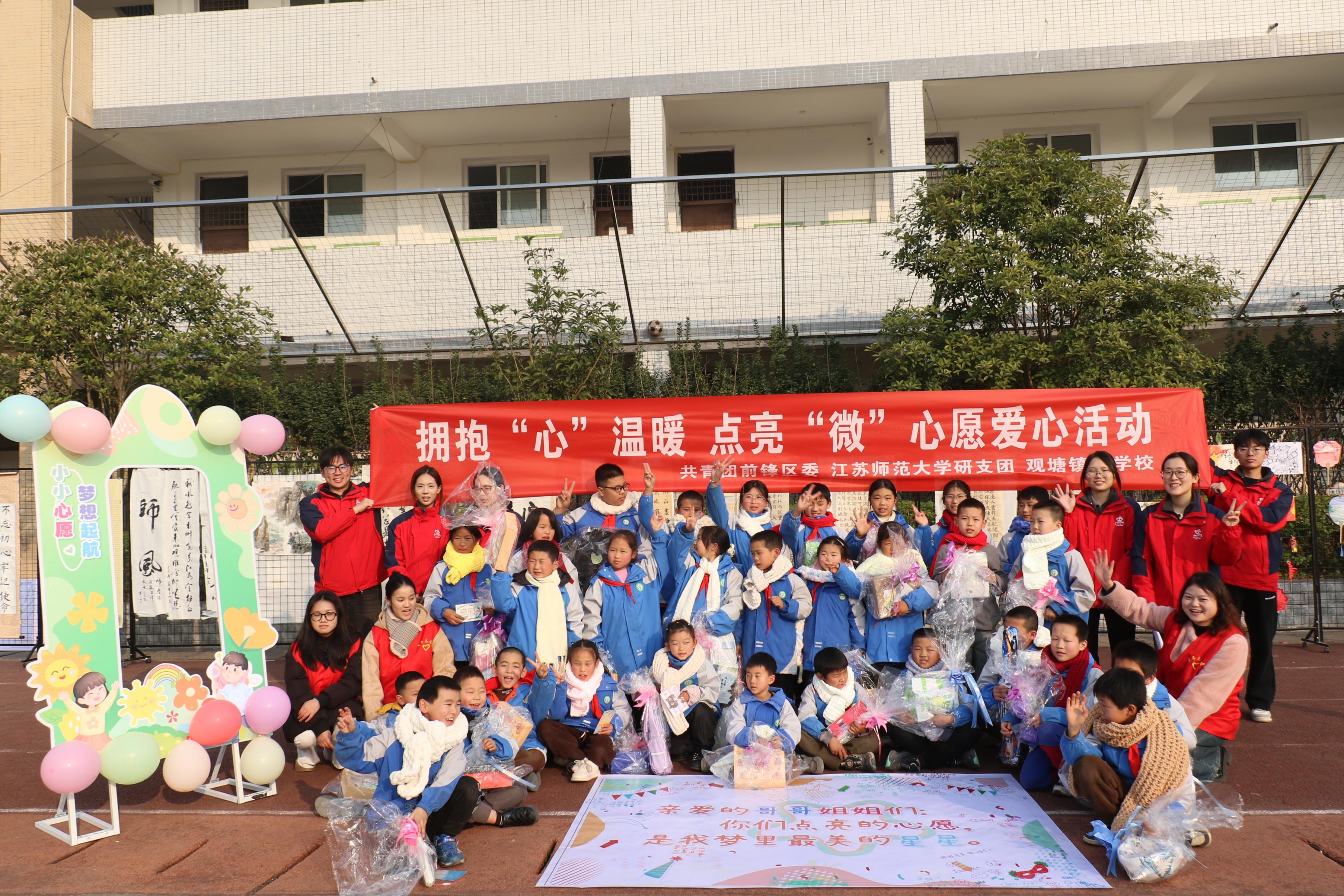 这场主题为“拥抱‘心’温暖,点亮‘微’心愿”的公益爱心助学活动,由前锋团区委统筹协调,江苏师范大学研究生支教团策划执行,观塘镇小学校和代市中学共同配合。