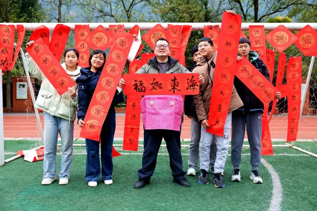 除了高县土火锅制作,校园里的迎新活动也是精彩纷呈。写春联、诵春酒赋、趣味体育游戏轮番上演。一副副春联承载着新年祝福,“川南请春酒”的民俗韵味也慢慢散开。