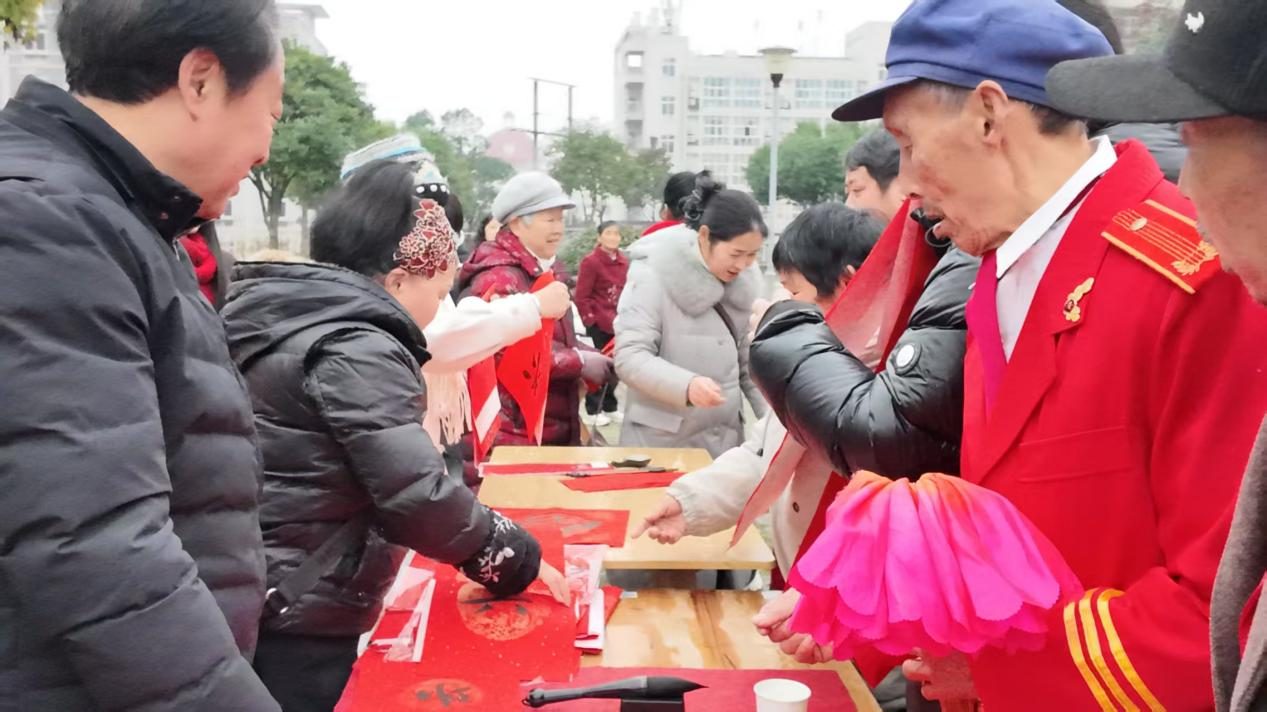 便民集市区热闹非凡,义诊、义剪、小黄粑售卖、春联书写等贴心服务齐聚一堂,居民在“健康驿站”享义诊,于“爱心发廊”焕新颜容,更在“翰墨迎春”处领取祝福春联,处处洋溢着温情与服务温度。