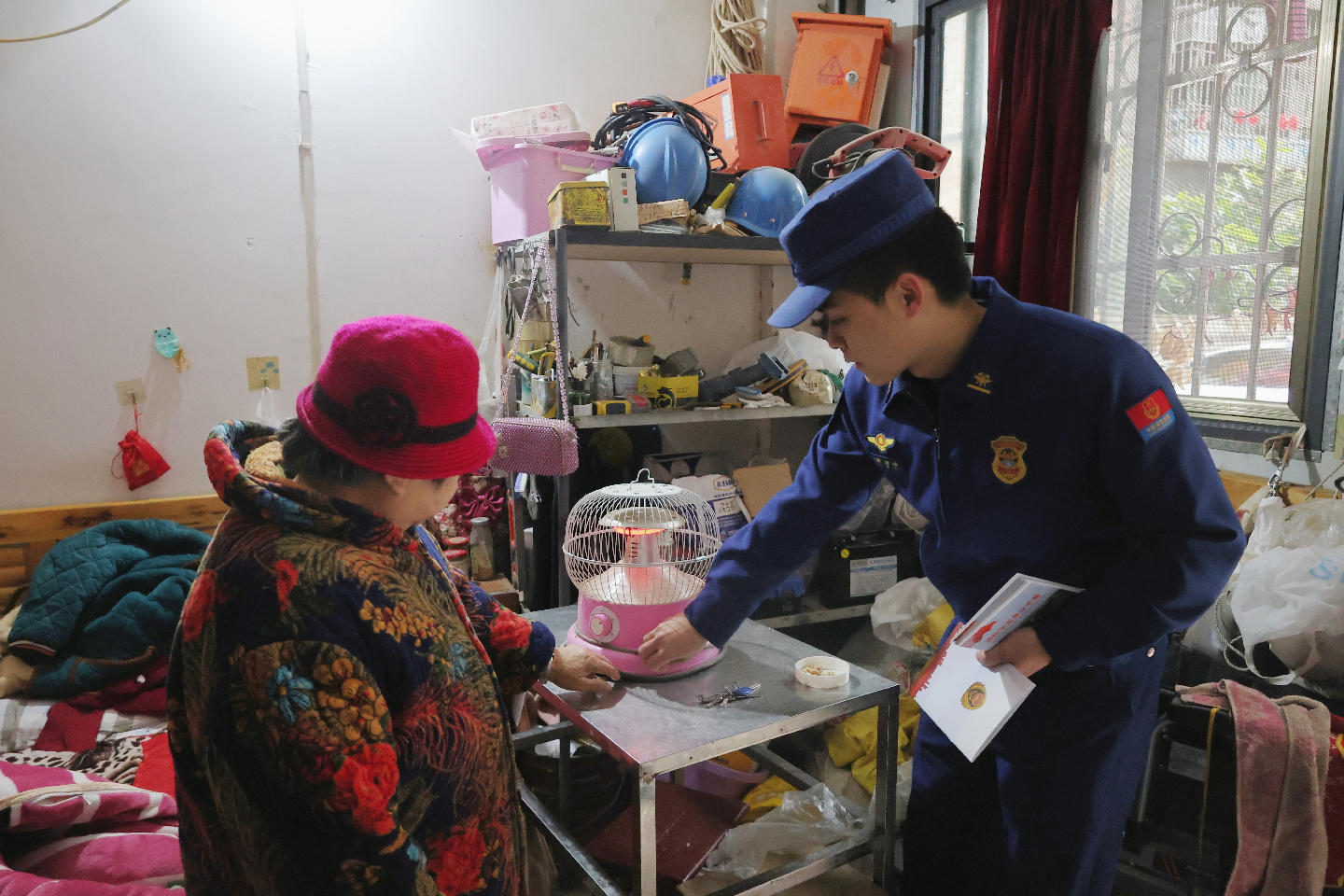 此次行动聚焦独居老人等重点群体消防安全意识薄弱、应急处置能力不足、家庭隐患易忽视等突出问题,结合冬季用火用电用气高发的季节特点,帮扶小组带着消防安全宣传单、安全常识手册,逐户走进独居老人家中,用通俗易懂的语言与老人亲切交谈,耐心讲解冬季取暖设备规范使用、电气线路检查、燃气安全防护等实用知识,重点提醒老人切勿私拉乱接电线、规范使用取暖产品、不卧床吸烟,牢记“三清三关”要求,普及火灾报警、初期火灾扑救及火场逃生自救技巧。防火班成员还对老人家中进行全方位细致检查,重点排查电气线路是否老化破损、插排是否超负荷使用、燃气管道及阀门是否存在泄漏、取暖设备与可燃物是否保持安全距离等各类安全隐患,对排查出的隐患,现场协助老人整改到位,告知老人注意事项,并联动社区网格员、物业进行跟踪整改,为独居老人营造安全舒适的居住环境。与此同时,为扩大消防安全宣传覆盖面,大队发动社区网格员在城市春天小区内发放宣传资料、张贴宣传海报,向过往居民普及家庭消防安全知识、冬季火灾防控要点,现场解答居民提出的各类消防疑问。