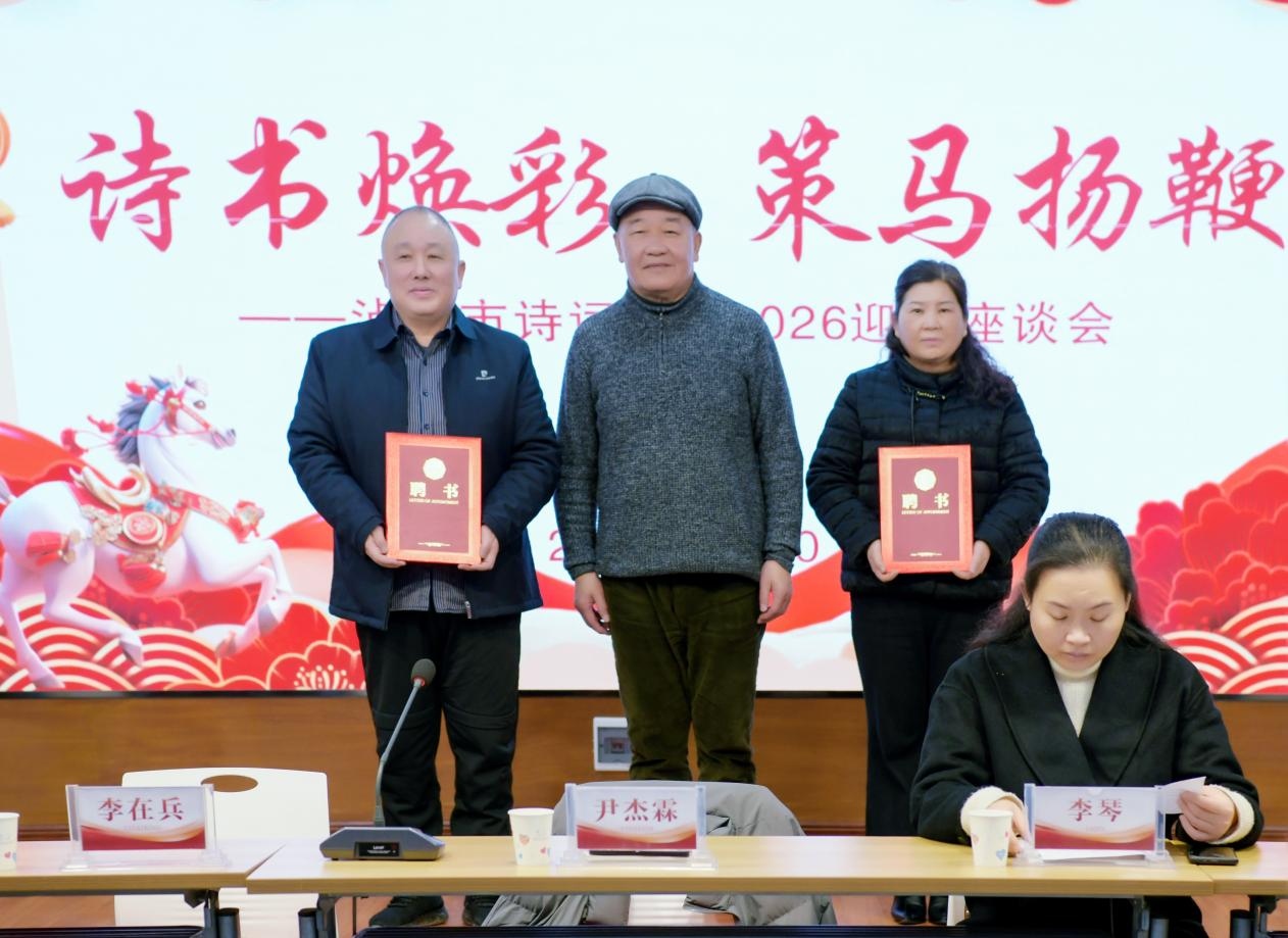 会议伊始,党支部副书记雷长诗领学习近平总书记关于传统文化的讲话,其关于推动转化、坚定自信等论述,为诗词学会和会员创作指明方向、意义深远。随后,副会长彭传鼎宣读四川省诗词学会会长邓建秋在四川省诗词学会三届二次理事会及2026年工作会上的讲话;副会长孙孝连宣读《泸州市文联文艺活动规范管理办法》,助力文艺事业规范发展。副会长申虹云宣读《泸州市诗词学会聘请饶敏、邓超艺为顾问的通知》,尹杰霖向新聘顾问饶敏和邓超艺颁发聘书。